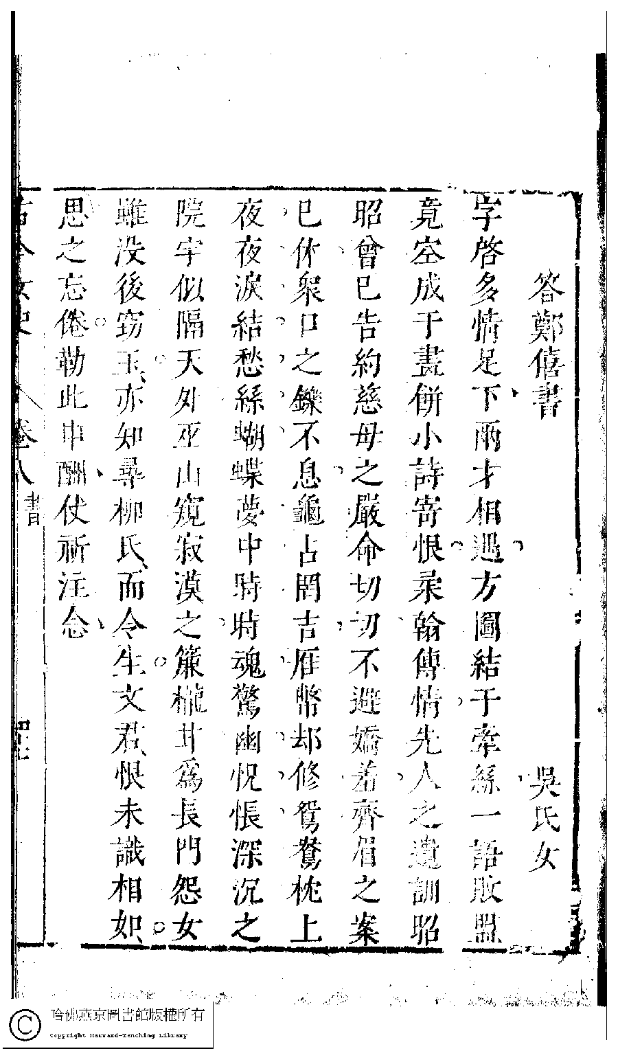 | (PRINT FRIENDLY VERSION) 古今女史﹕十二卷﹐詩集﹕八卷﹐附姓氏字里詳節﹕一卷(明趙世杰輯)。明崇禎(1628-1644)問奇閣刻本 ![]() 頁碼 : 8.47a | 点 击 放 大 | 返回 |