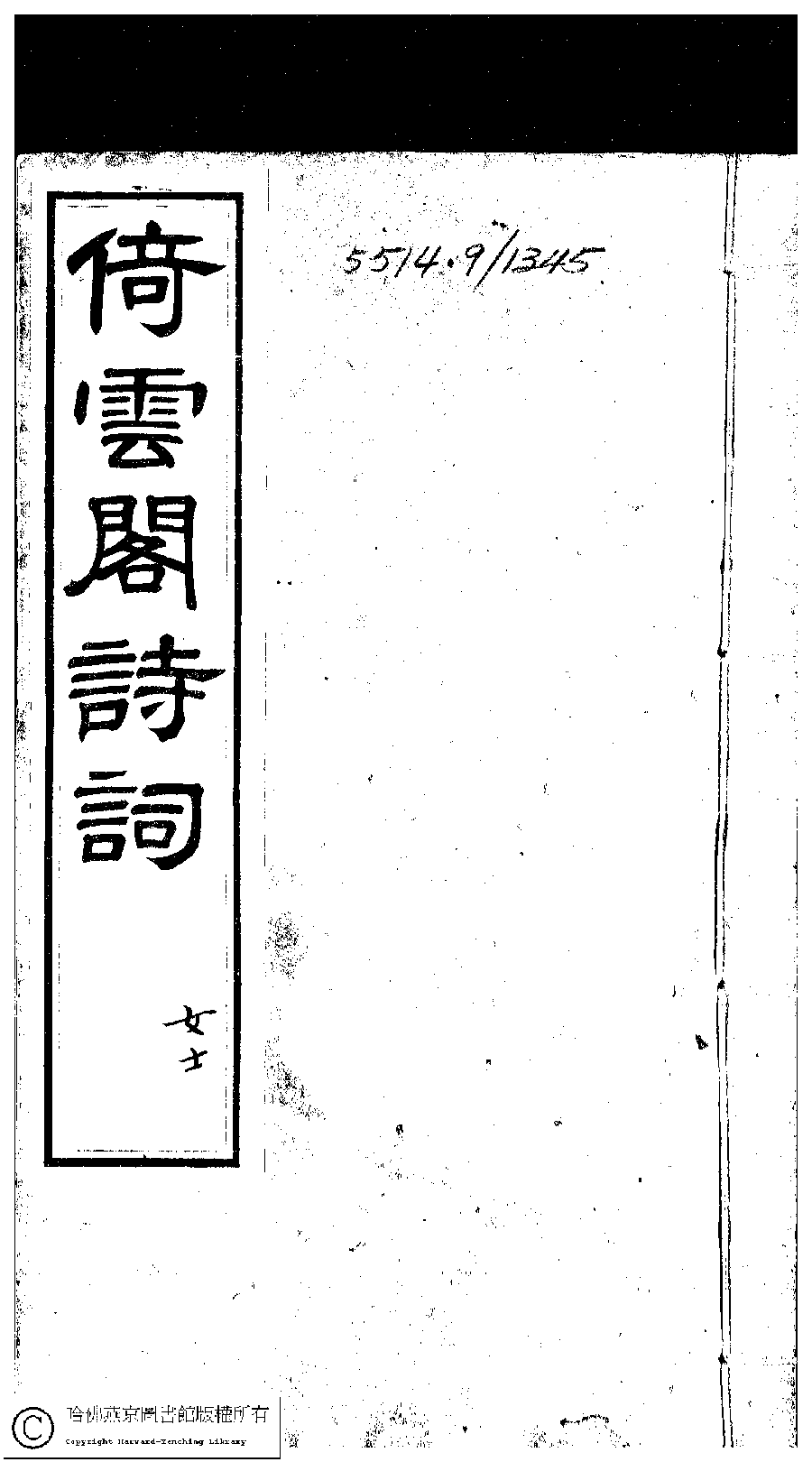 | 原書: 倚雲閣詩存﹕三卷﹐補遺﹕一卷﹐詩餘存﹕三卷(清張友書撰) |