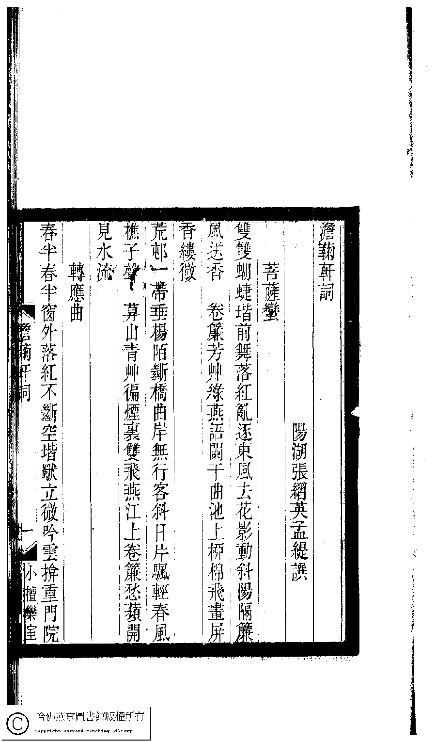 | 原書: 小檀欒室彙刻閨秀詞﹕十集一百種一百卷(清徐乃昌輯): 澹菊軒詞﹕一卷 |