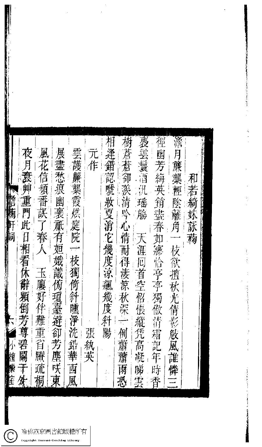 | 原書: 小檀欒室彙刻閨秀詞﹕十集一百種一百卷(清徐乃昌輯): 澹菊軒詞﹕一卷 |
