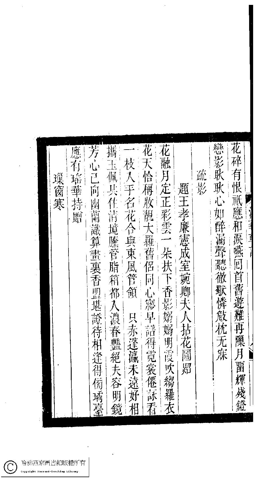 | (PRINT FRIENDLY VERSION) 小檀欒室彙刻閨秀詞﹕十集一百種一百卷(清徐乃昌輯) : 澹菊軒詞﹕一卷。清光緒二十二年(1896)南陵徐氏刻本。 ![]() 頁碼 : 澹菊軒詞.9a | 点 击 放 大 | 小檀欒室彙刻閨秀詞﹕十集一百種一百卷(清徐乃昌輯) : 澹菊軒詞﹕一卷。清光緒二十二年(1896)南陵徐氏刻本。![]() 頁碼 : 澹菊軒詞.8b | 点 击 放 大 | 返回 |