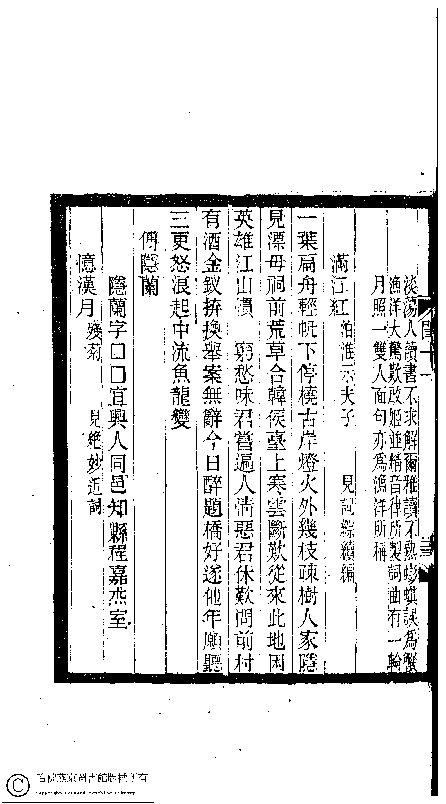 | (PRINT FRIENDLY VERSION) 閨秀詞鈔﹕十六卷(清徐乃昌輯)。清宣統元年(1909)小檀欒室刻本。 ![]() 頁碼 : 11.23b | 点 击 放 大 | 閨秀詞鈔﹕十六卷(清徐乃昌輯)。清宣統元年(1909)小檀欒室刻本。![]() 頁碼 : 11.23a | 点 击 放 大 | 返回 |