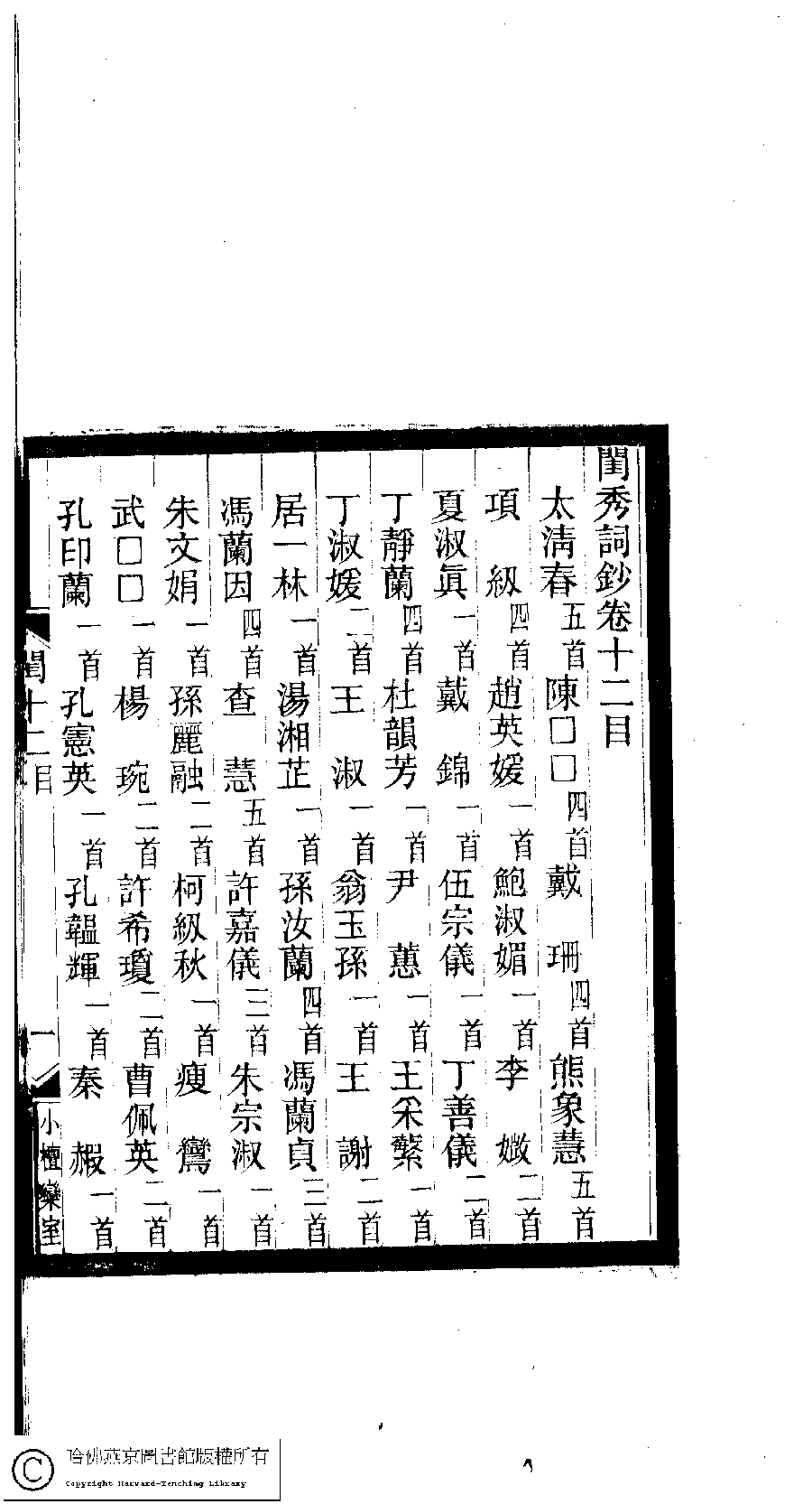 | 原書: 閨秀詞鈔﹕十六卷(清徐乃昌輯) |