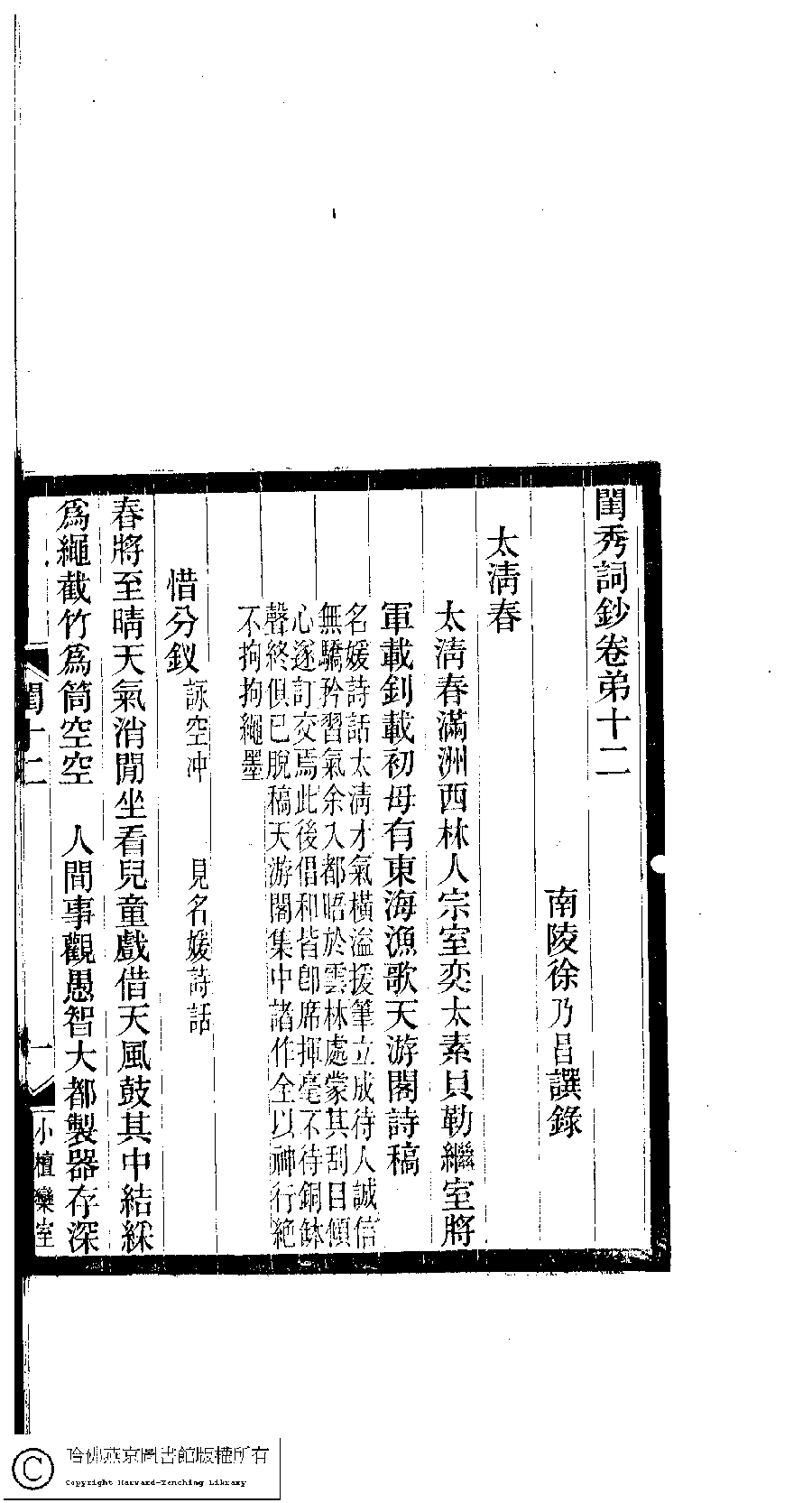 | 原書: 閨秀詞鈔﹕十六卷(清徐乃昌輯) |