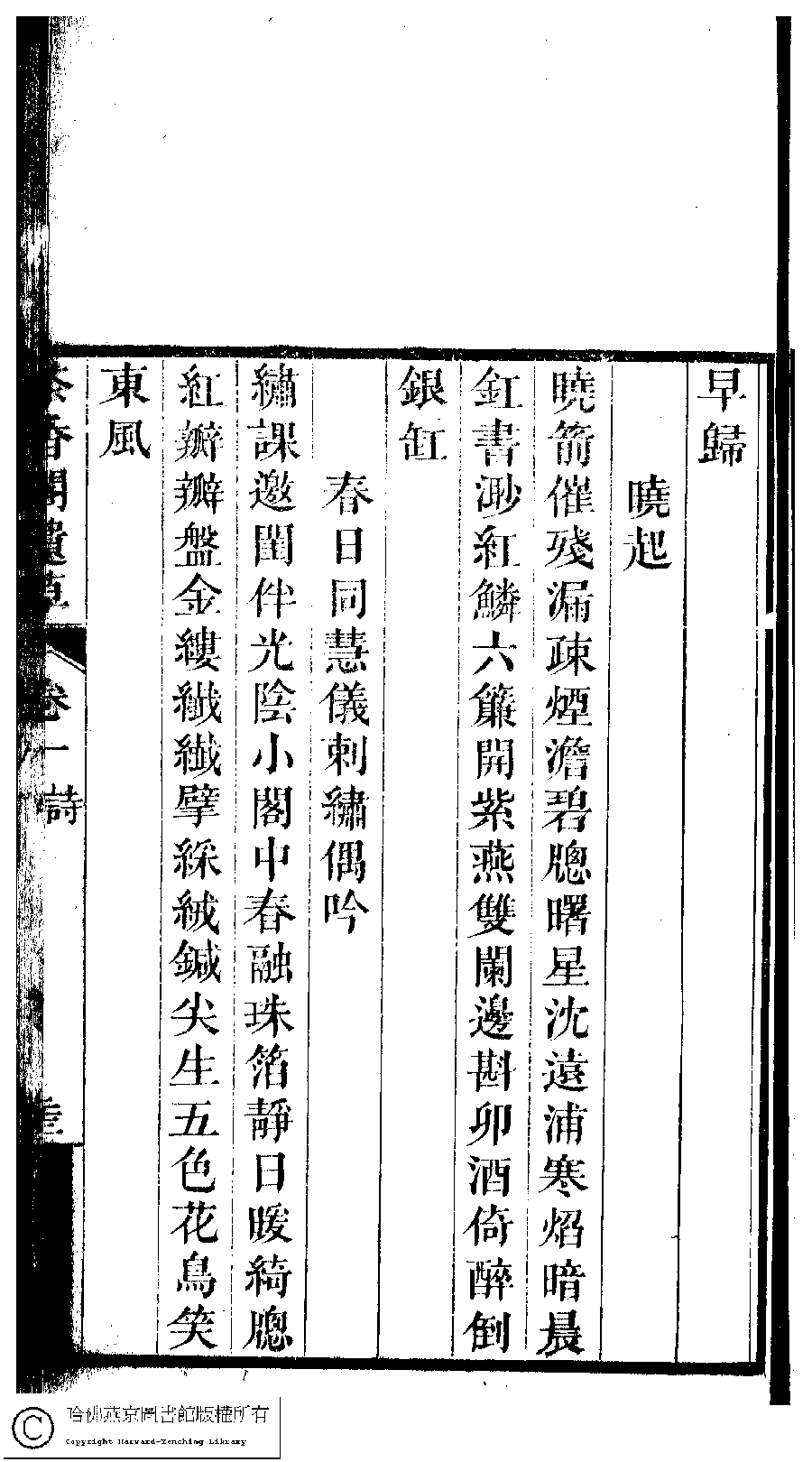 | (PRINT FRIENDLY VERSION) 茶香閣遺草﹕二卷(清黃婉璚撰)。清道光十年(1830)刻本。 ![]() 頁碼 : 1.23a | 点 击 放 大 | 茶香閣遺草﹕二卷(清黃婉璚撰)。清道光十年(1830)刻本。![]() 頁碼 : 1.22b | 点 击 放 大 | 返回 |