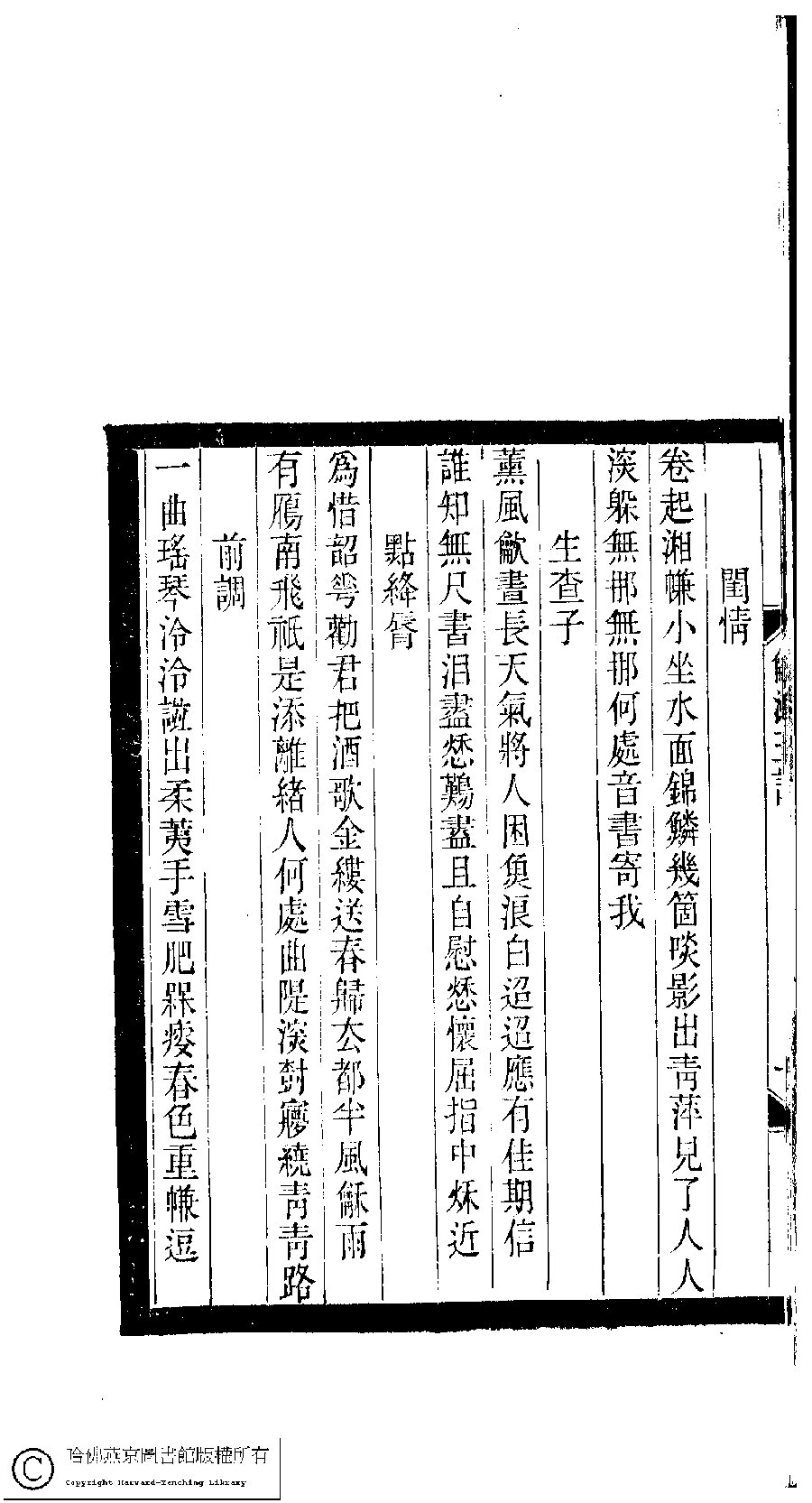 | 原書: 小檀欒室彙刻閨秀詞﹕十集一百種一百卷(清徐乃昌輯): 和漱玉詞﹕一卷 |