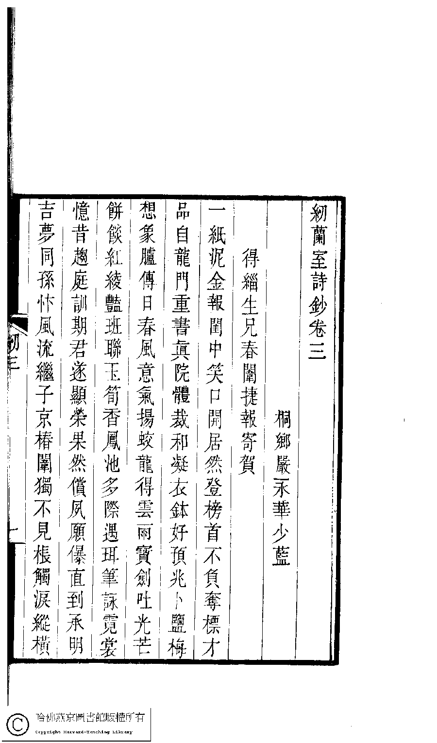 | 原書: 紉蘭室詩鈔﹕三卷(清嚴永華撰) |