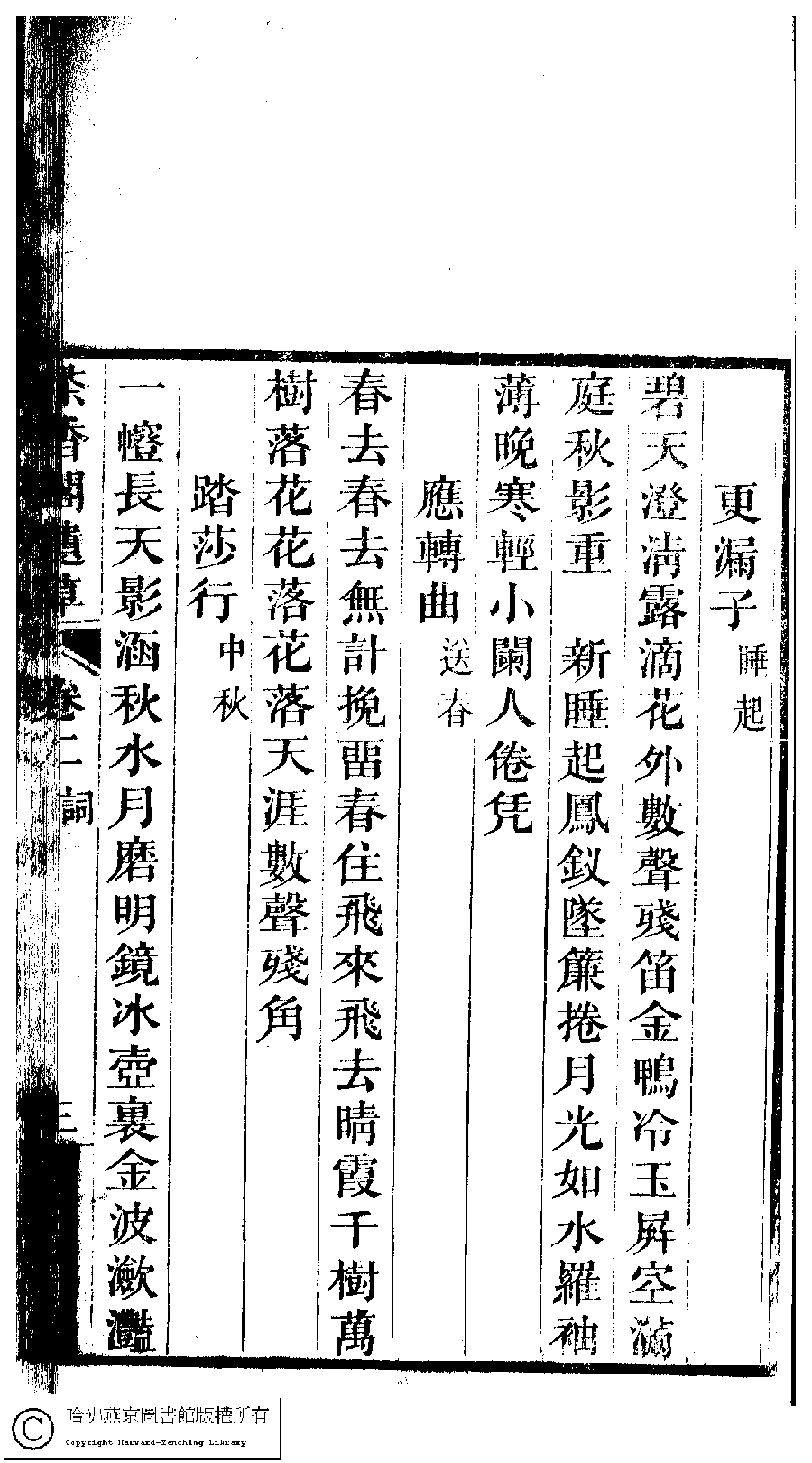 | (PRINT FRIENDLY VERSION) 茶香閣遺草﹕二卷(清黃婉璚撰)。清道光十年(1830)刻本。 ![]() 頁碼 : 2.4a | 点 击 放 大 | 茶香閣遺草﹕二卷(清黃婉璚撰)。清道光十年(1830)刻本。![]() 頁碼 : 2.3b | 点 击 放 大 | 返回 |