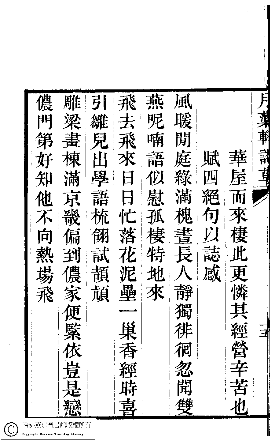 詩詞 [辛丑初夏有雙燕來巢於堂喜其不登華屋而來棲此更憐其經營辛苦也賦四絕句以誌感(四首)]