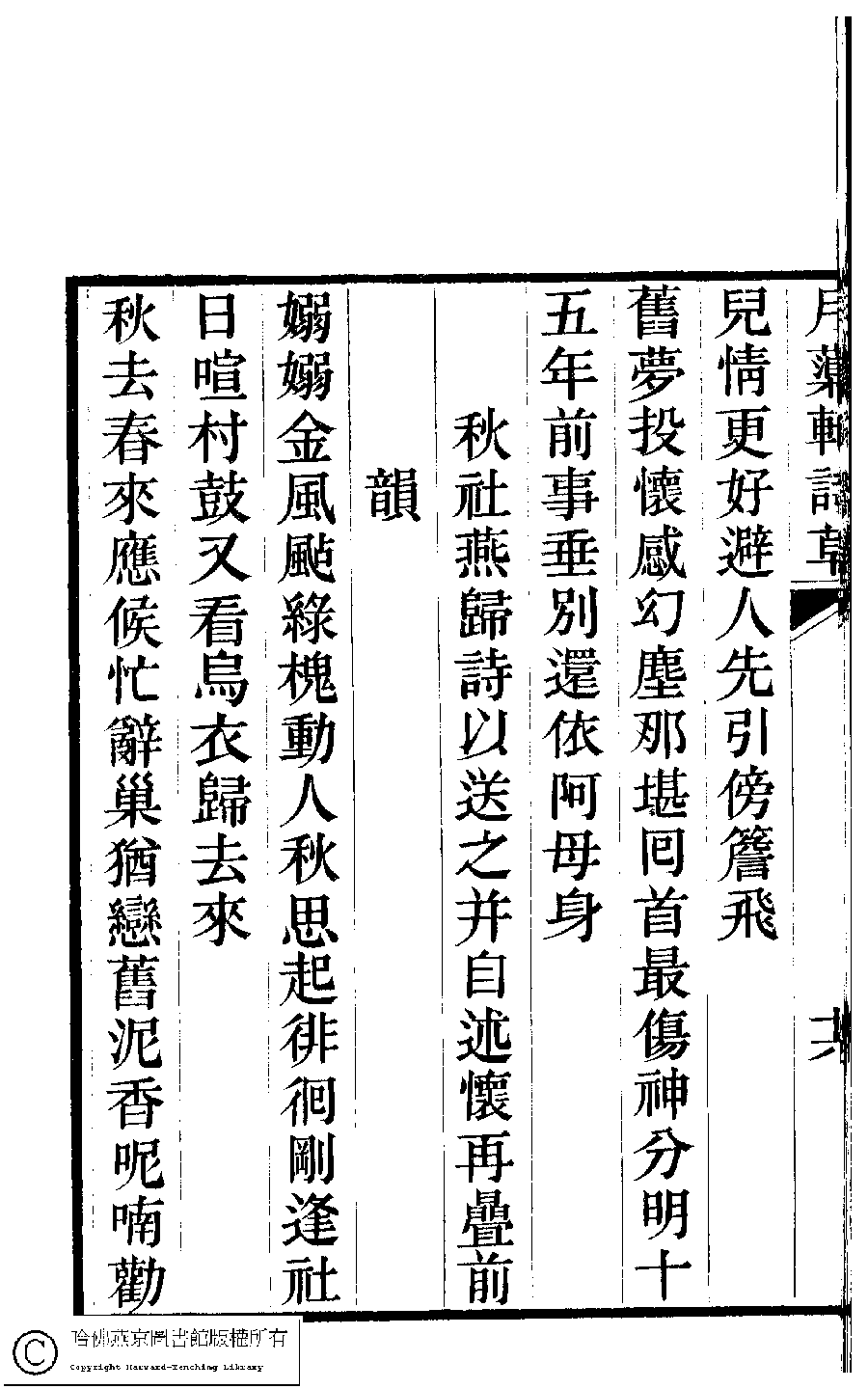 | 原書: 月蕖軒詩草﹕一卷﹐詩餘﹕一卷(清袁鏡蓉撰) |