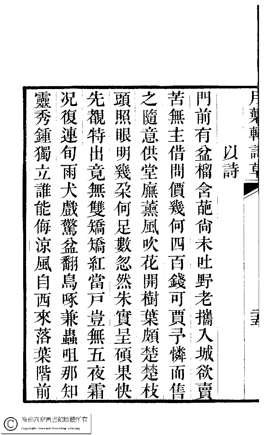 | 原書: 月蕖軒詩草﹕一卷﹐詩餘﹕一卷(清袁鏡蓉撰) |