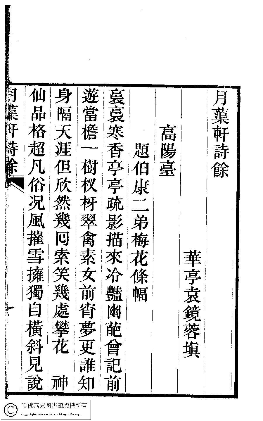 | 原書: 月蕖軒詩草﹕一卷﹐詩餘﹕一卷(清袁鏡蓉撰) |