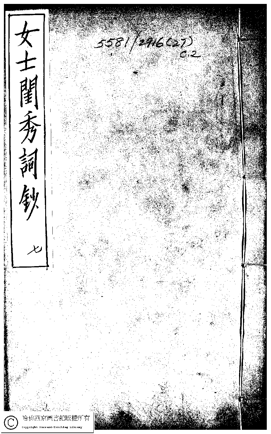 閨秀詞鈔﹕十六卷(清徐乃昌輯)。清宣統元年(1909)小檀欒室刻本。