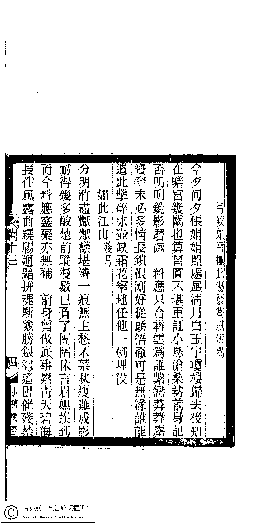 | (PRINT FRIENDLY VERSION) 閨秀詞鈔﹕十六卷(清徐乃昌輯)。清宣統元年(1909)小檀欒室刻本。 ![]() 頁碼 : 13.4b | 点 击 放 大 | 閨秀詞鈔﹕十六卷(清徐乃昌輯)。清宣統元年(1909)小檀欒室刻本。![]() 頁碼 : 13.4a | 点 击 放 大 | 返回 |