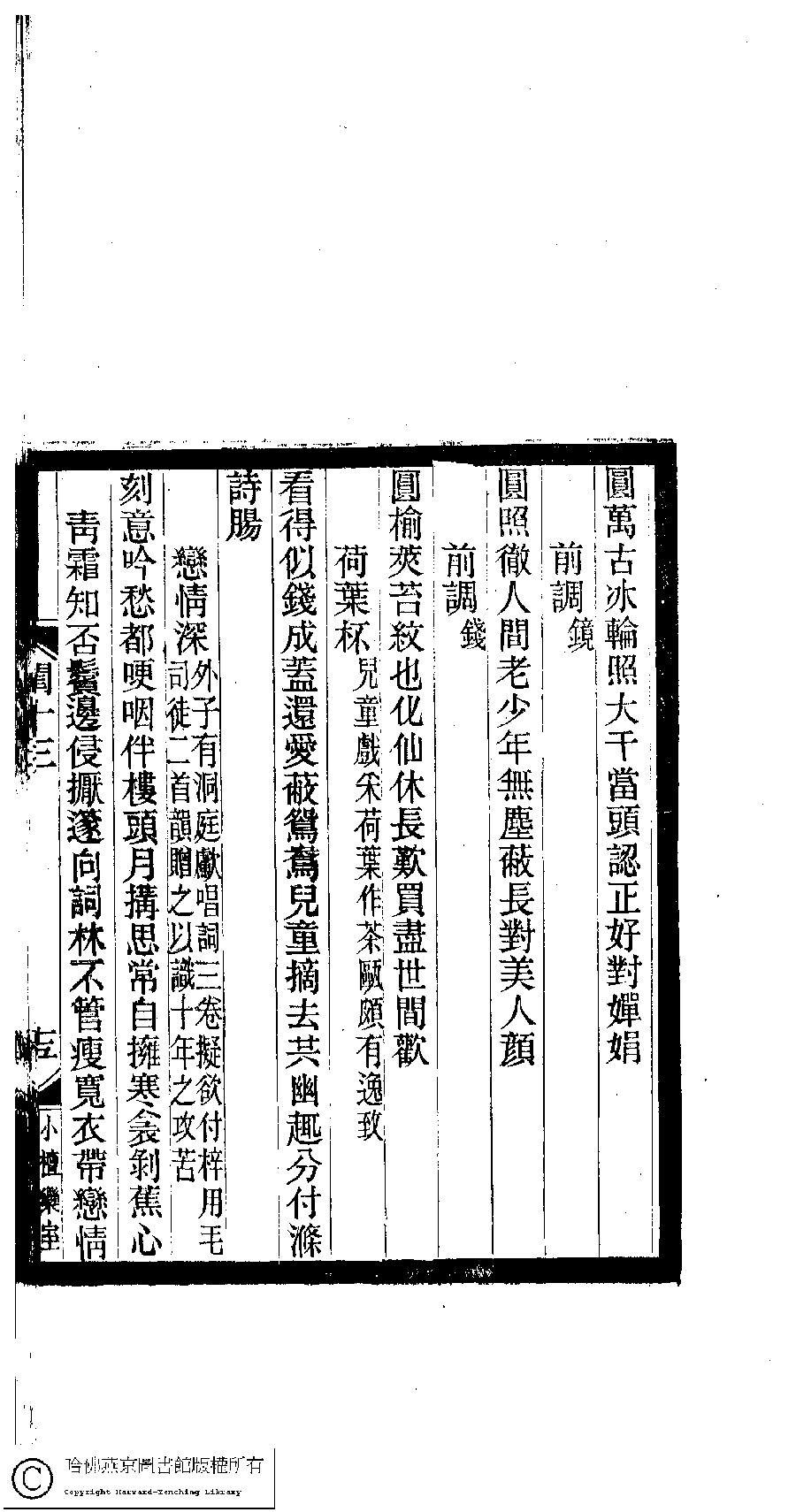 | (PRINT FRIENDLY VERSION) 閨秀詞鈔﹕十六卷(清徐乃昌輯)。清宣統元年(1909)小檀欒室刻本。 ![]() 頁碼 : 13.15a | 点 击 放 大 | 返回 |