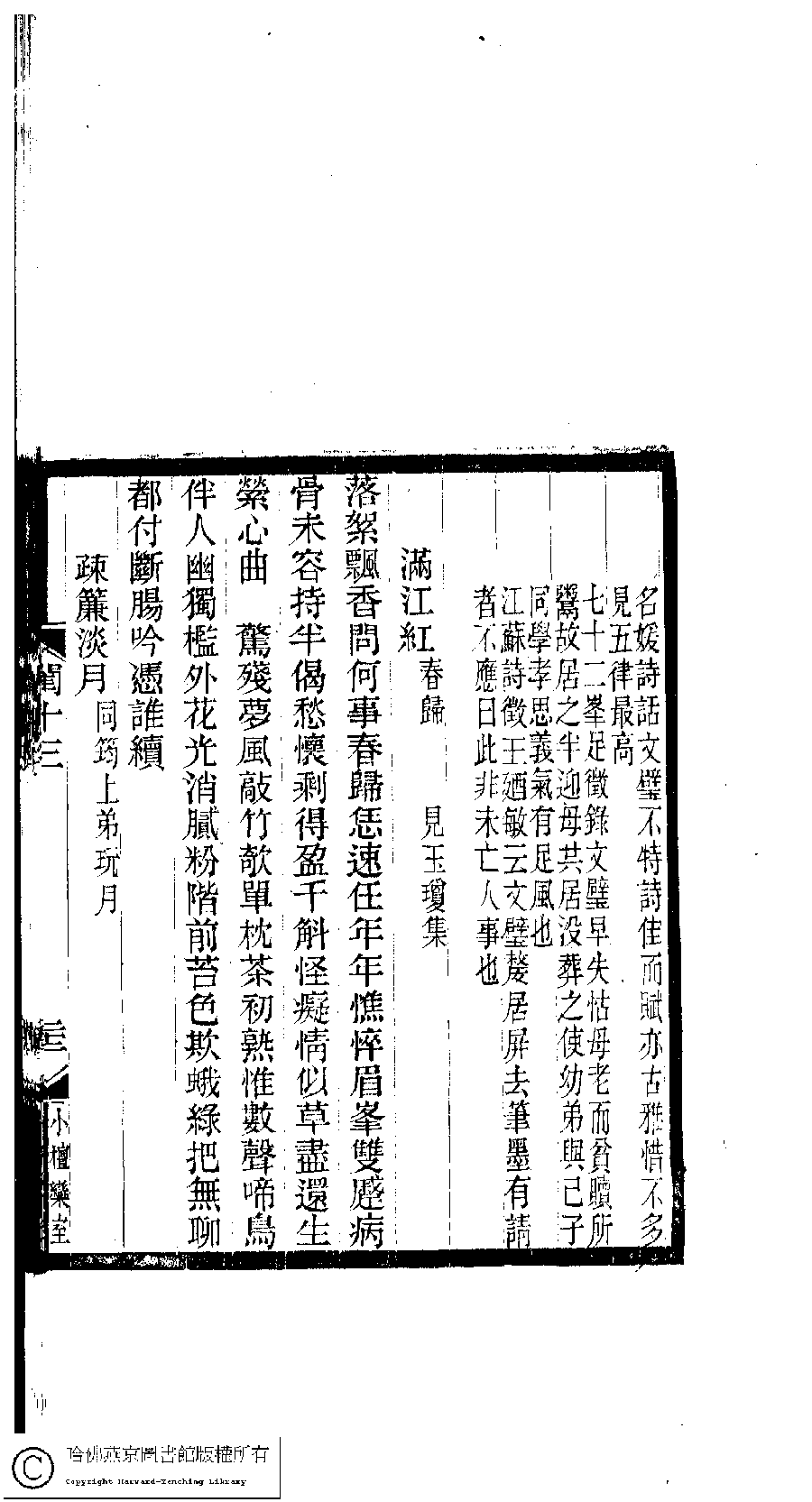 | (PRINT FRIENDLY VERSION) 閨秀詞鈔﹕十六卷(清徐乃昌輯)。清宣統元年(1909)小檀欒室刻本。 ![]() 頁碼 : 13.22b | 点 击 放 大 | 閨秀詞鈔﹕十六卷(清徐乃昌輯)。清宣統元年(1909)小檀欒室刻本。![]() 頁碼 : 13.22a | 点 击 放 大 | 返回 |