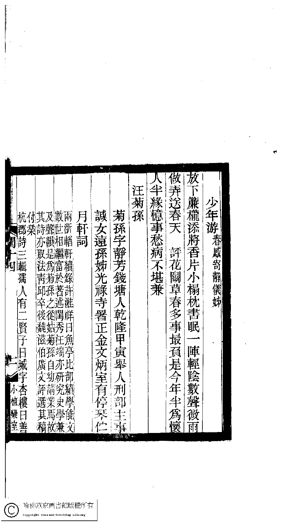 | (PRINT FRIENDLY VERSION) 閨秀詞鈔﹕十六卷(清徐乃昌輯)。清宣統元年(1909)小檀欒室刻本。 ![]() 頁碼 : 14.11b | 点 击 放 大 | 閨秀詞鈔﹕十六卷(清徐乃昌輯)。清宣統元年(1909)小檀欒室刻本。![]() 頁碼 : 14.11a | 点 击 放 大 | 返回 |