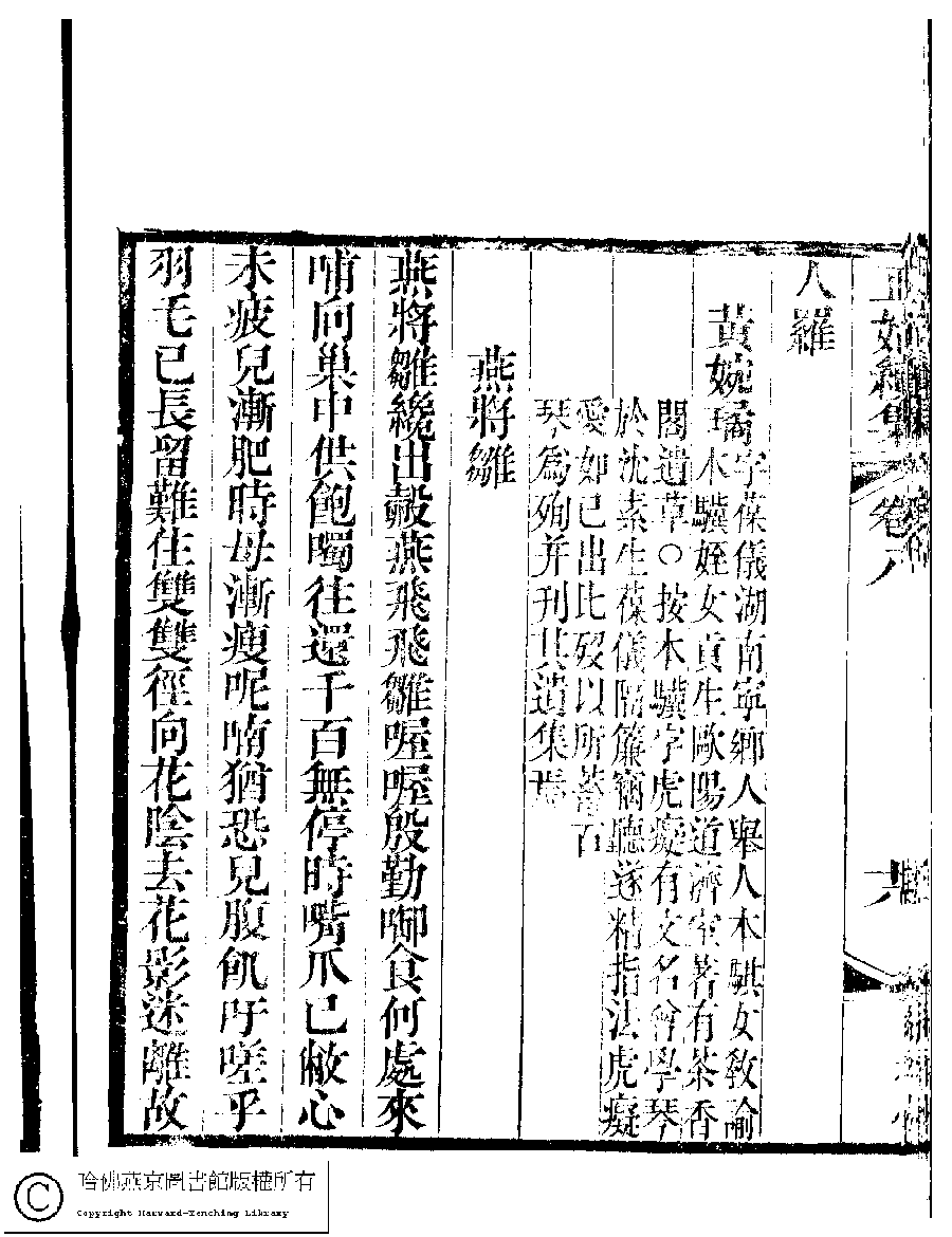 | 原書: 國朝閨秀正始續集﹕十卷﹐附錄﹕一卷﹐補遺﹕一卷﹐輓詞﹕一卷(清惲珠輯) |