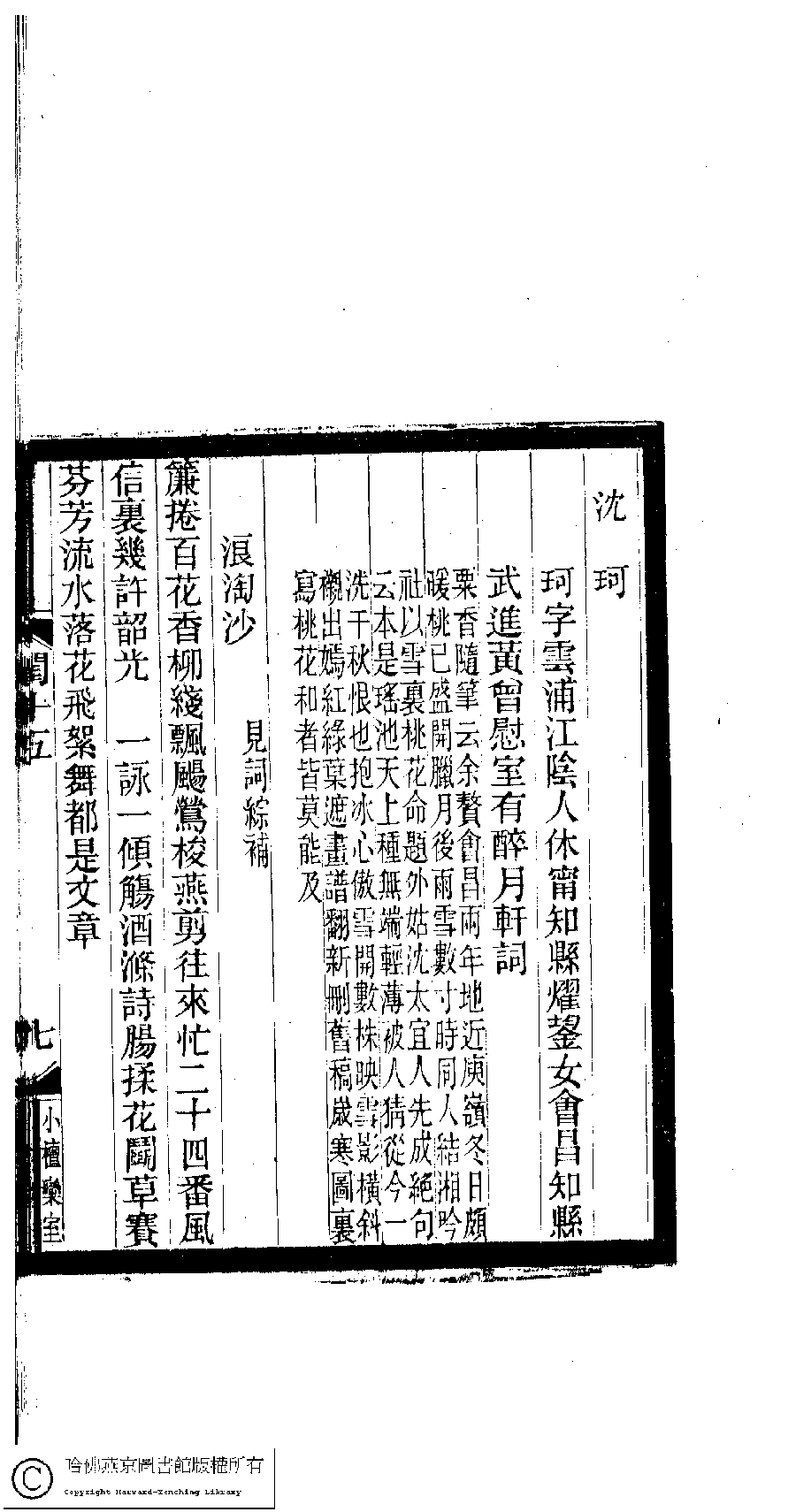 | (PRINT FRIENDLY VERSION) 閨秀詞鈔﹕十六卷(清徐乃昌輯)。清宣統元年(1909)小檀欒室刻本。 ![]() 頁碼 : 15.7a | 点 击 放 大 | 返回 |