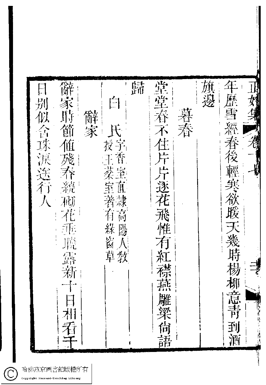 | 原書: 國朝閨秀正始集﹕二十卷﹐附錄﹕一卷﹐補遺﹕一卷﹐又附題詞﹕一卷(清惲珠輯) |