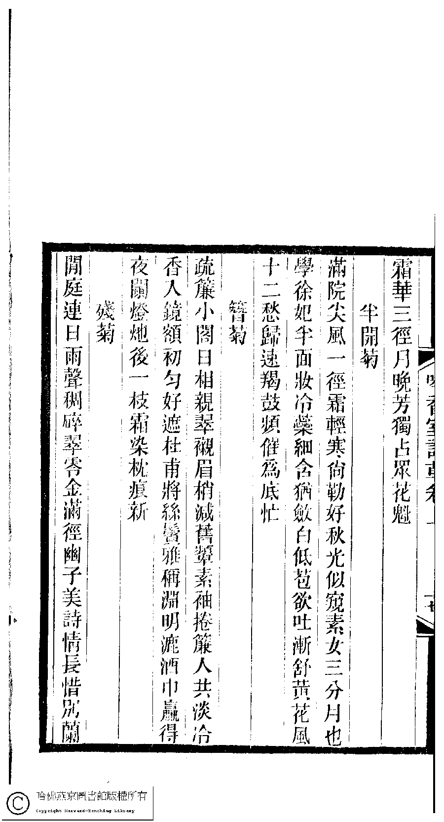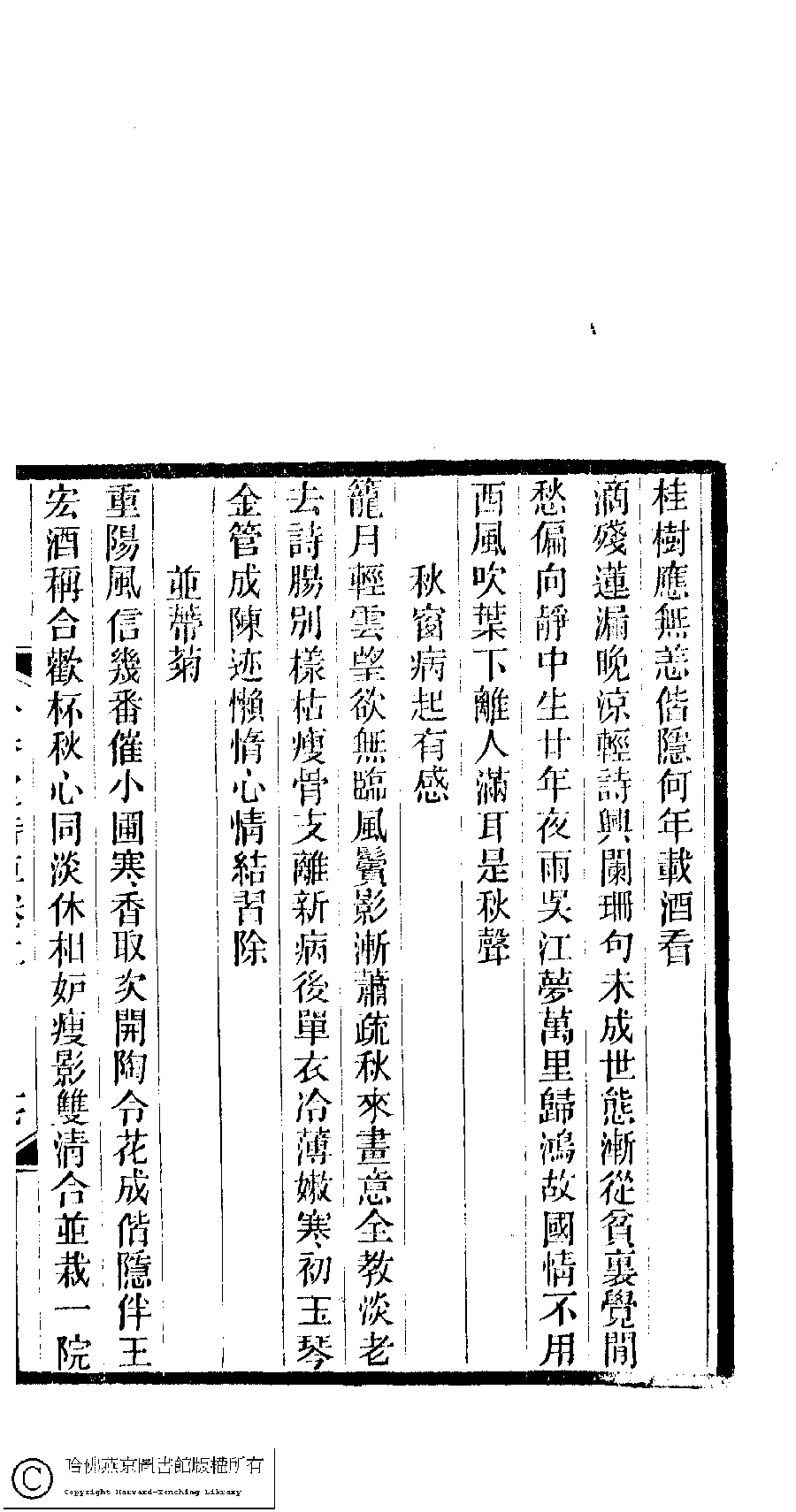 | (PRINT FRIENDLY VERSION) 吟香室詩草﹕二卷﹐續刻﹕一卷﹐附刻﹕一卷(清楊蘊輝撰)。清光緒二十三年(1897)刻本。 ![]() 頁碼 : 1.17b | 点 击 放 大 | 吟香室詩草﹕二卷﹐續刻﹕一卷﹐附刻﹕一卷(清楊蘊輝撰)。清光緒二十三年(1897)刻本。![]() 頁碼 : 1.17a | 点 击 放 大 | 返回 |