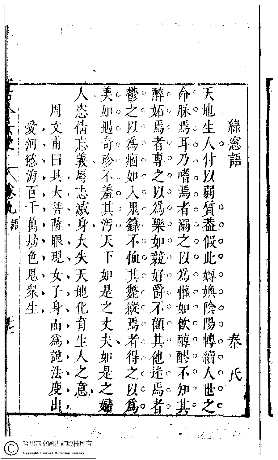 | (PRINT FRIENDLY VERSION) 古今女史﹕十二卷﹐詩集﹕八卷﹐附姓氏字里詳節﹕一卷(明趙世杰輯)。明崇禎(1628-1644)問奇閣刻本 ![]() 頁碼 : 9.17a | 点 击 放 大 | 返回 |