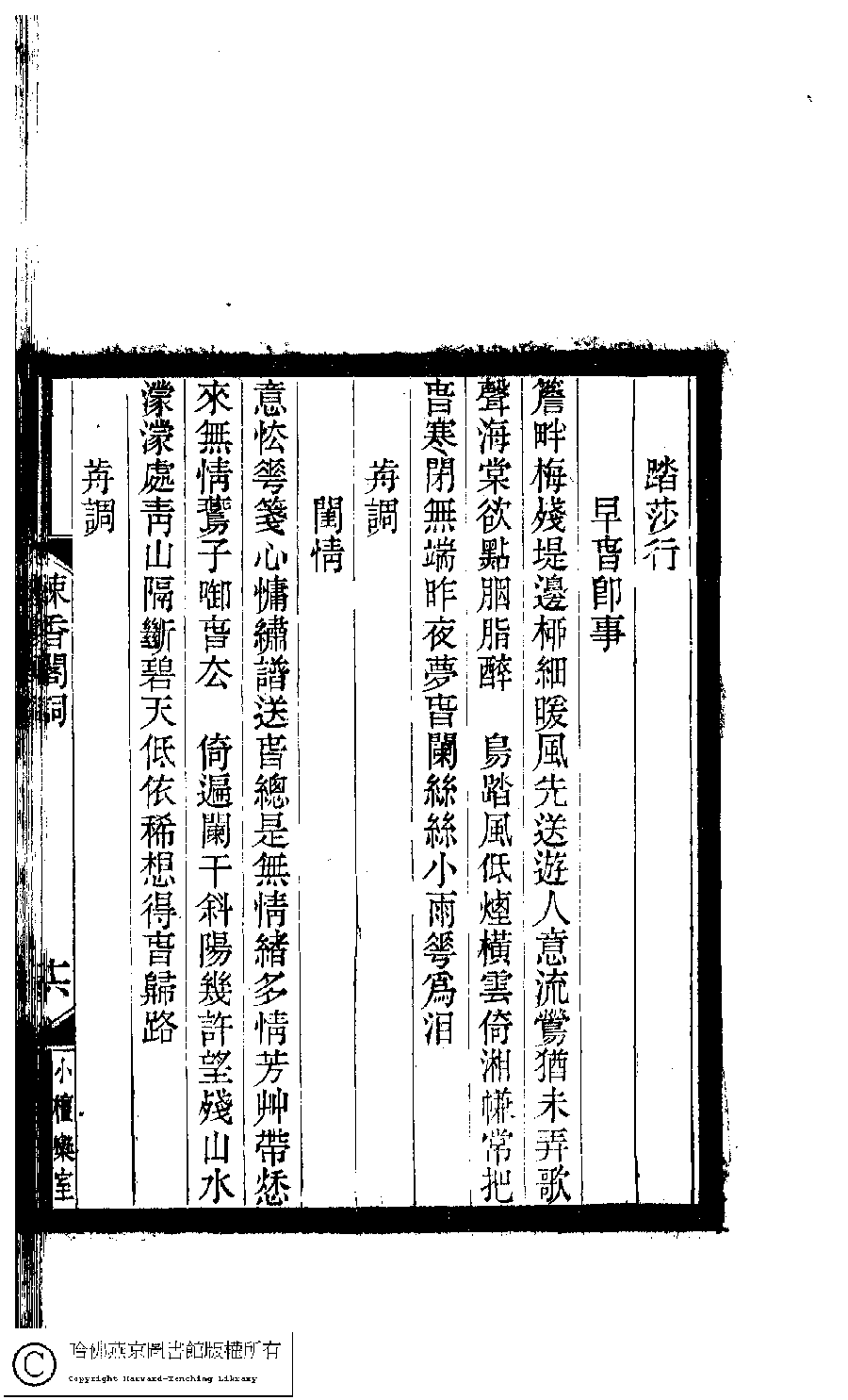 | 原書: 小檀欒室彙刻閨秀詞﹕十集一百種一百卷(清徐乃昌輯): 疎香閣詞﹕一卷 |