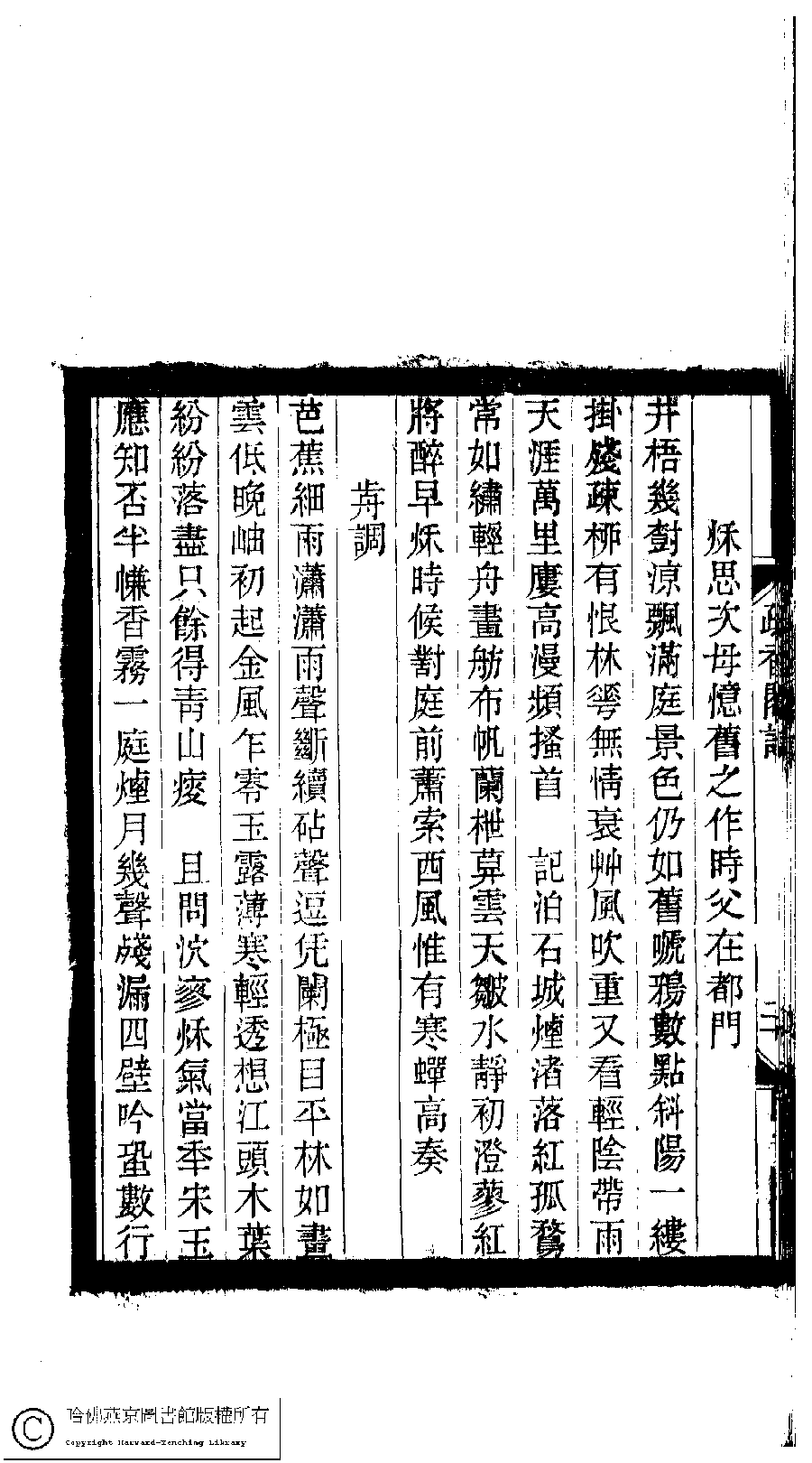 詩詞 [前調[水龍吟] ﹕秋思次母憶舊之作時父在都門]