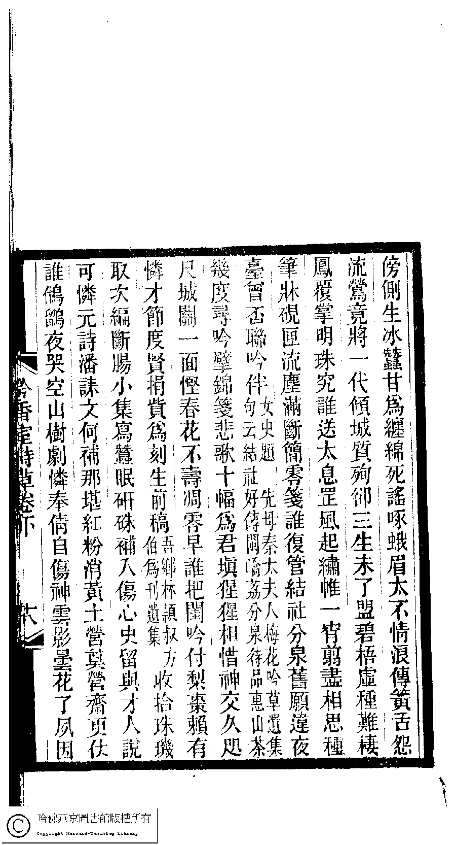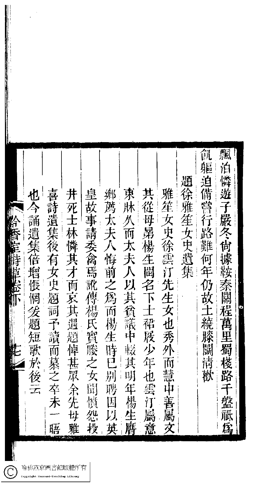| (PRINT FRIENDLY VERSION) 吟香室詩草﹕二卷﹐續刻﹕一卷﹐附刻﹕一卷(清楊蘊輝撰)。清光緒二十三年(1897)刻本。 ![]() 頁碼 : 2.18b | 点 击 放 大 | 吟香室詩草﹕二卷﹐續刻﹕一卷﹐附刻﹕一卷(清楊蘊輝撰)。清光緒二十三年(1897)刻本。![]() 頁碼 : 2.18a | 点 击 放 大 | 吟香室詩草﹕二卷﹐續刻﹕一卷﹐附刻﹕一卷(清楊蘊輝撰)。清光緒二十三年(1897)刻本。![]() 頁碼 : 2.17b | 点 击 放 大 | 吟香室詩草﹕二卷﹐續刻﹕一卷﹐附刻﹕一卷(清楊蘊輝撰)。清光緒二十三年(1897)刻本。![]() 頁碼 : 2.17a | 点 击 放 大 | 返回 |