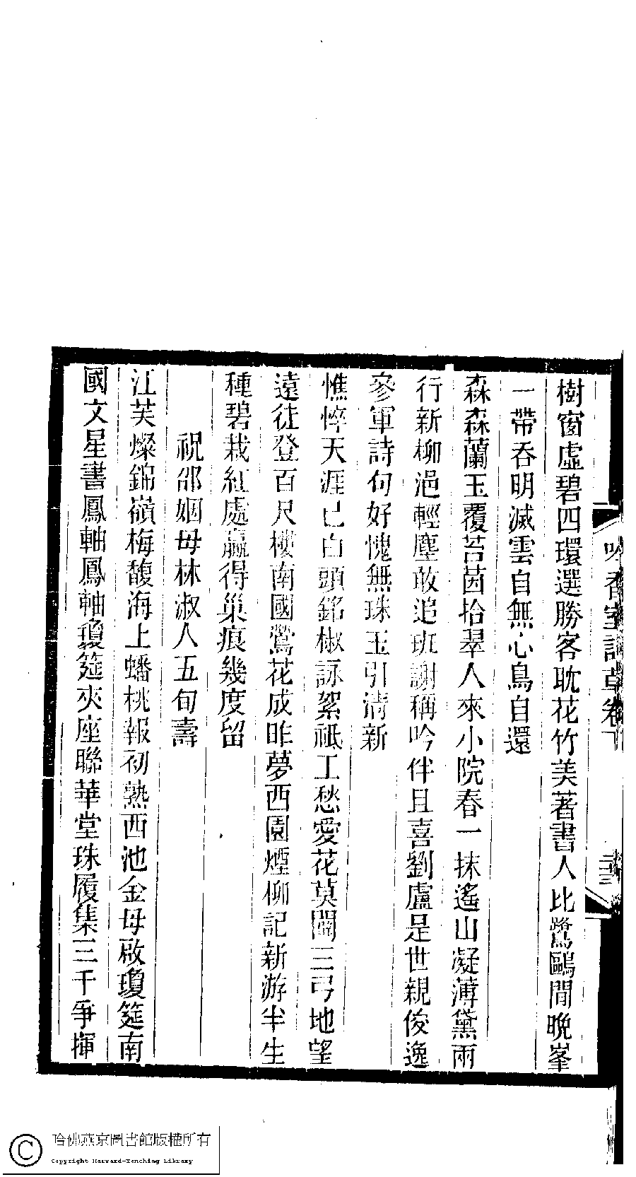 | 原書: 吟香室詩草﹕二卷﹐續刻﹕一卷﹐附刻﹕一卷(清楊蘊輝撰) |
