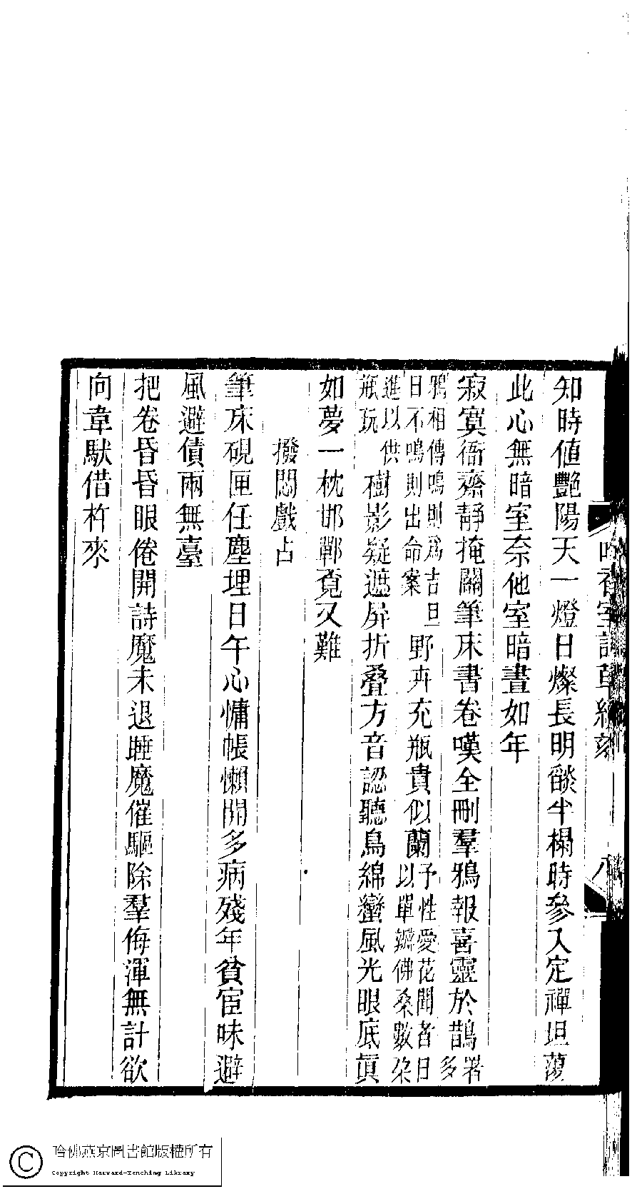 | (PRINT FRIENDLY VERSION) 吟香室詩草﹕二卷﹐續刻﹕一卷﹐附刻﹕一卷(清楊蘊輝撰)。清光緒二十三年(1897)刻本。 ![]() 頁碼 : 續刻.8b | 点 击 放 大 | 吟香室詩草﹕二卷﹐續刻﹕一卷﹐附刻﹕一卷(清楊蘊輝撰)。清光緒二十三年(1897)刻本。![]() 頁碼 : 續刻.8a | 点 击 放 大 | 返回 |