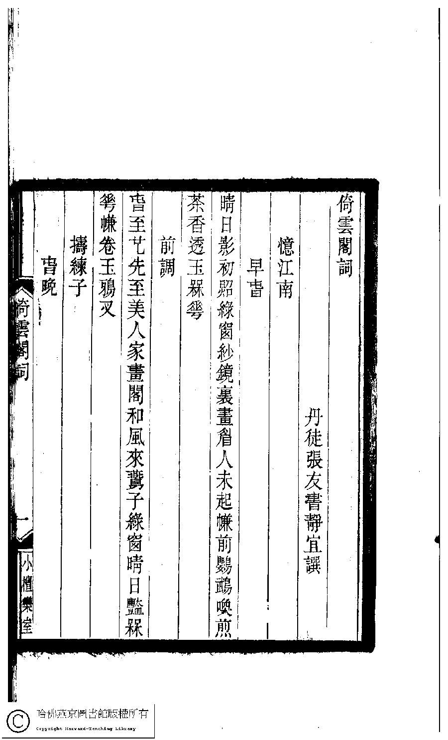 | 原書: 小檀欒室彙刻閨秀詞﹕十集一百種一百卷(清徐乃昌輯): 倚雲閣詞﹕一卷 |