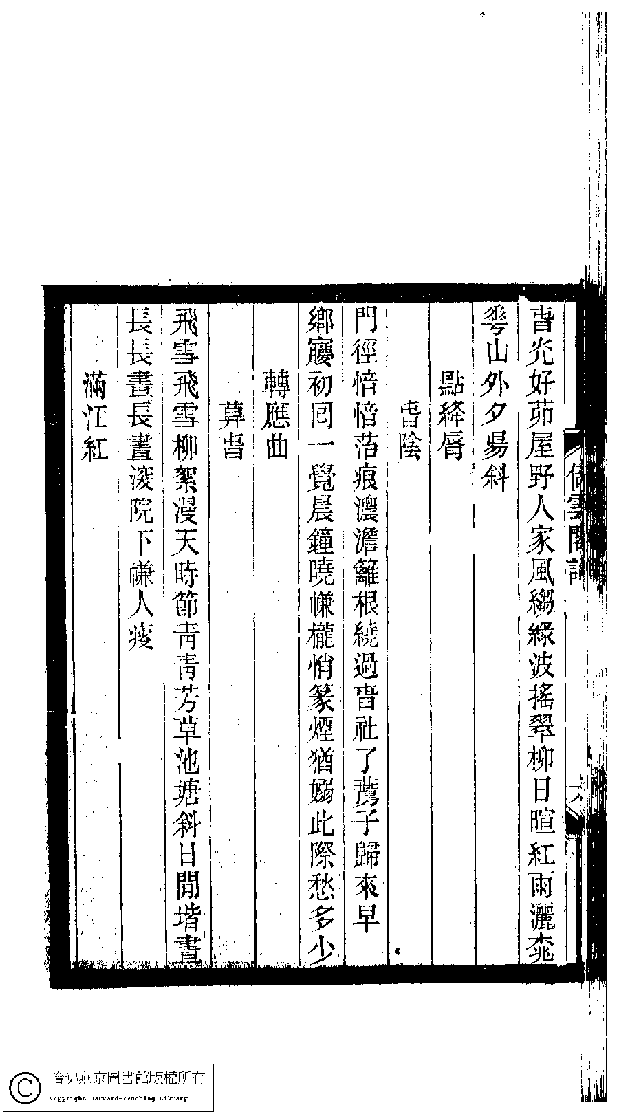 | 原書: 小檀欒室彙刻閨秀詞﹕十集一百種一百卷(清徐乃昌輯): 倚雲閣詞﹕一卷 |