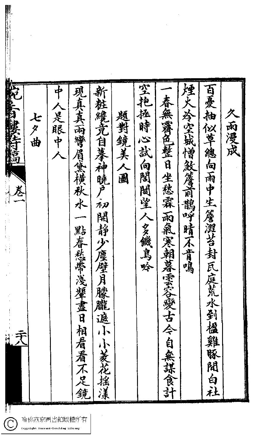 | 原書: 畹香樓詩集﹕二卷(清梁蘭漪撰) |