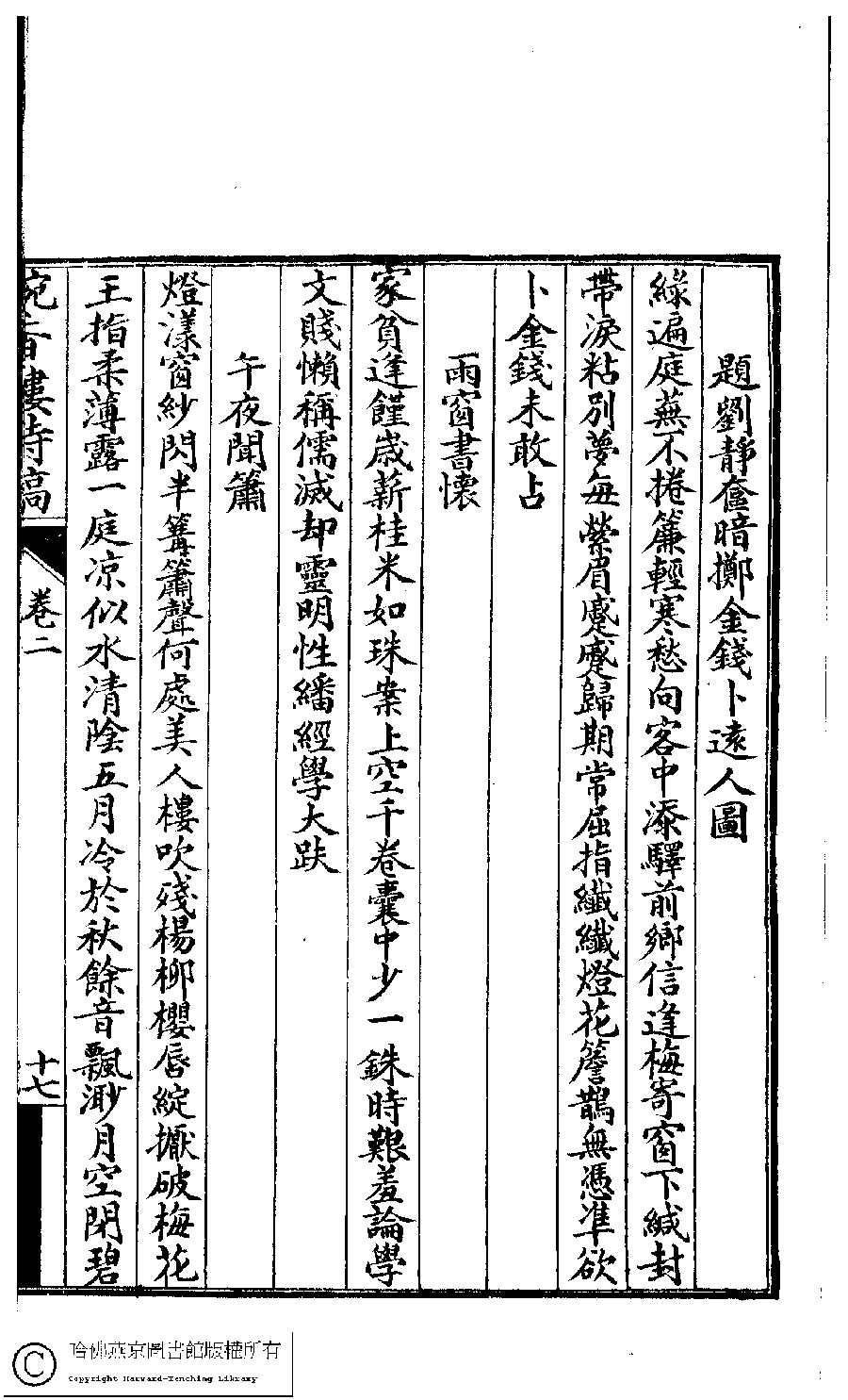 詩詞 [題劉靜奩暗擲金錢卜遠人圖]