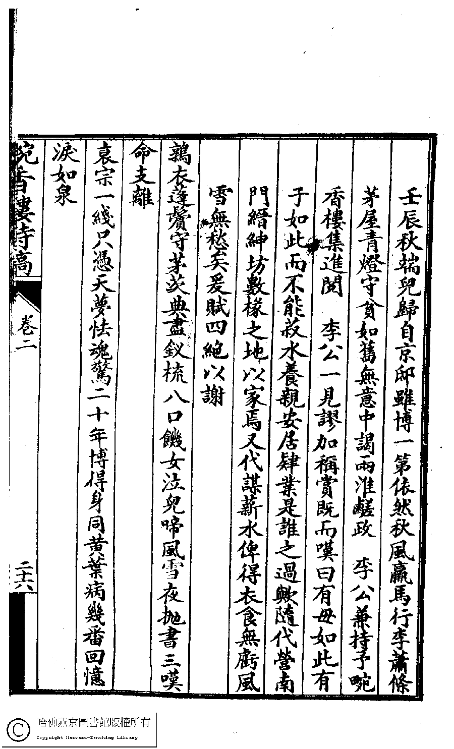 | (PRINT FRIENDLY VERSION) 畹香樓詩集﹕二卷(清梁蘭漪撰)。清光緒二十一年(1895)飛鴻閣書林石印本。 ![]() 頁碼 : 2.26b | 点 击 放 大 | 畹香樓詩集﹕二卷(清梁蘭漪撰)。清光緒二十一年(1895)飛鴻閣書林石印本。![]() 頁碼 : 2.26a | 点 击 放 大 | 返回 |