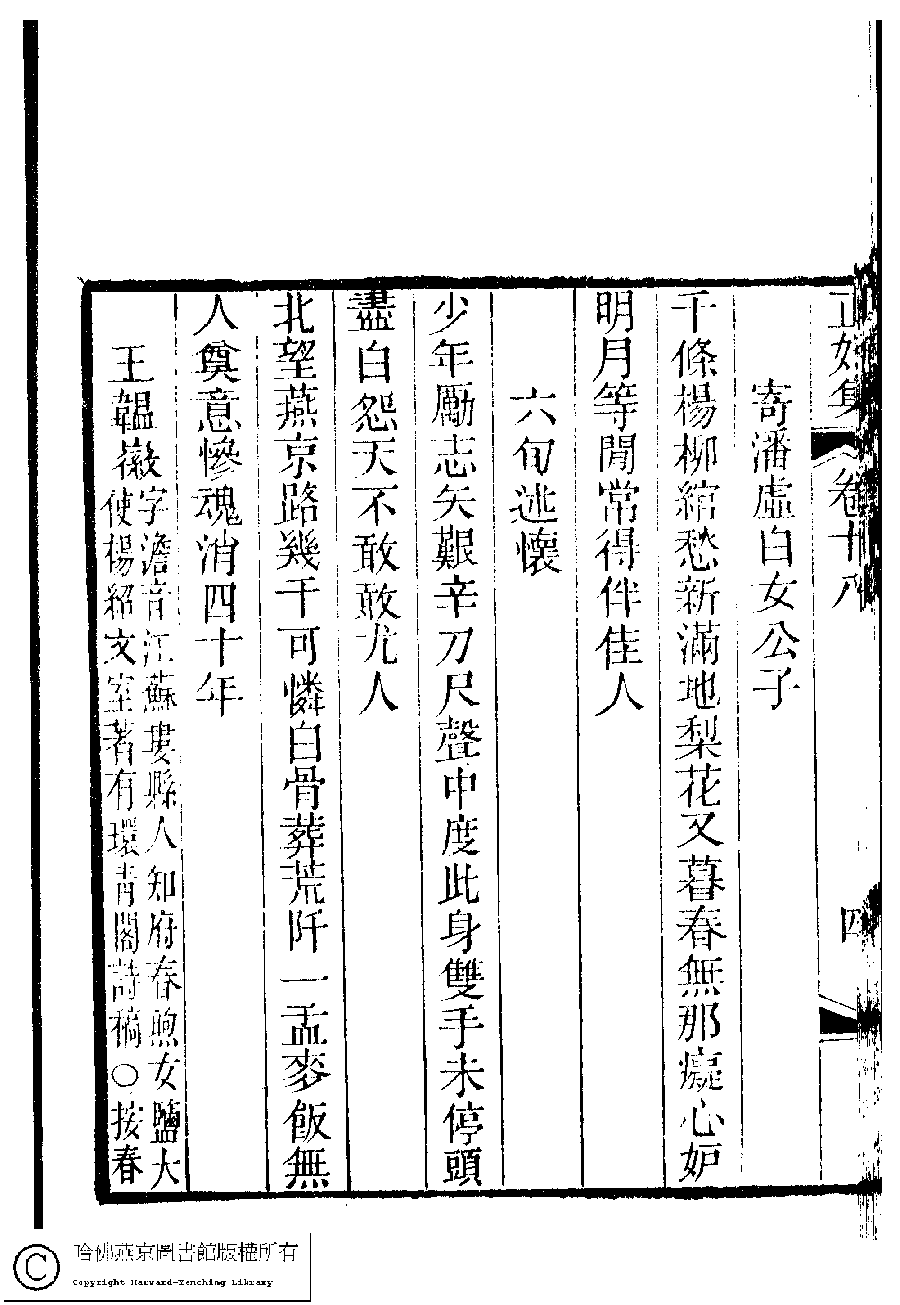 | 原書: 國朝閨秀正始集﹕二十卷﹐附錄﹕一卷﹐補遺﹕一卷﹐又附題詞﹕一卷(清惲珠輯) |