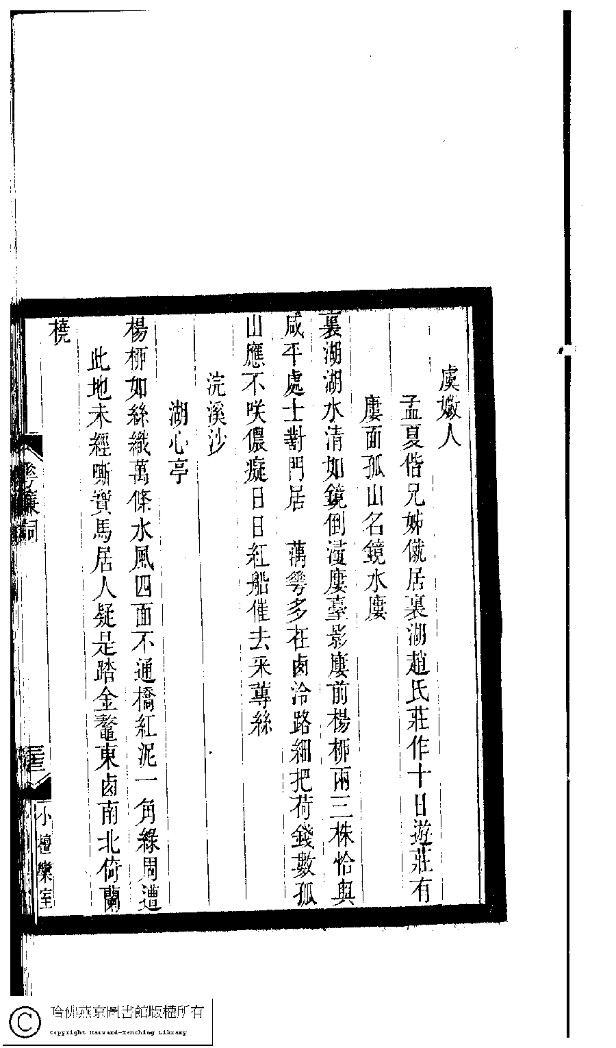 詩詞 [虞美人 ﹕孟夏偕兄姊僦居裏湖趙氏莊作十日遊莊有廔面孤山名鏡水樓]