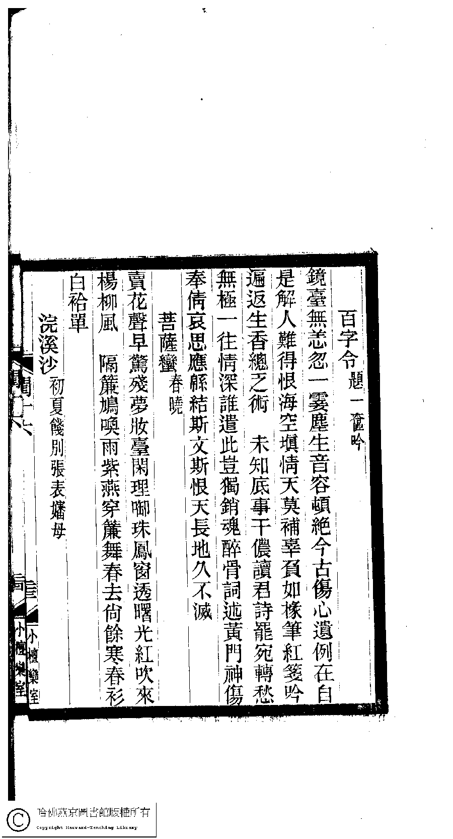 | (PRINT FRIENDLY VERSION) 閨秀詞鈔﹕十六卷(清徐乃昌輯)。清宣統元年(1909)小檀欒室刻本。 ![]() 頁碼 : 16.23b | 点 击 放 大 | 閨秀詞鈔﹕十六卷(清徐乃昌輯)。清宣統元年(1909)小檀欒室刻本。![]() 頁碼 : 16.23a | 点 击 放 大 | 返回 |