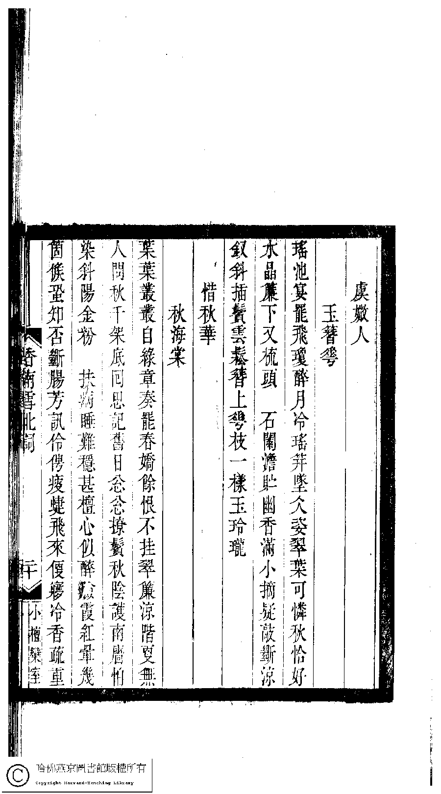 | 原書: 小檀欒室彙刻閨秀詞﹕十集一百種一百卷(清徐乃昌輯): 香南雪北詞﹕一卷 |