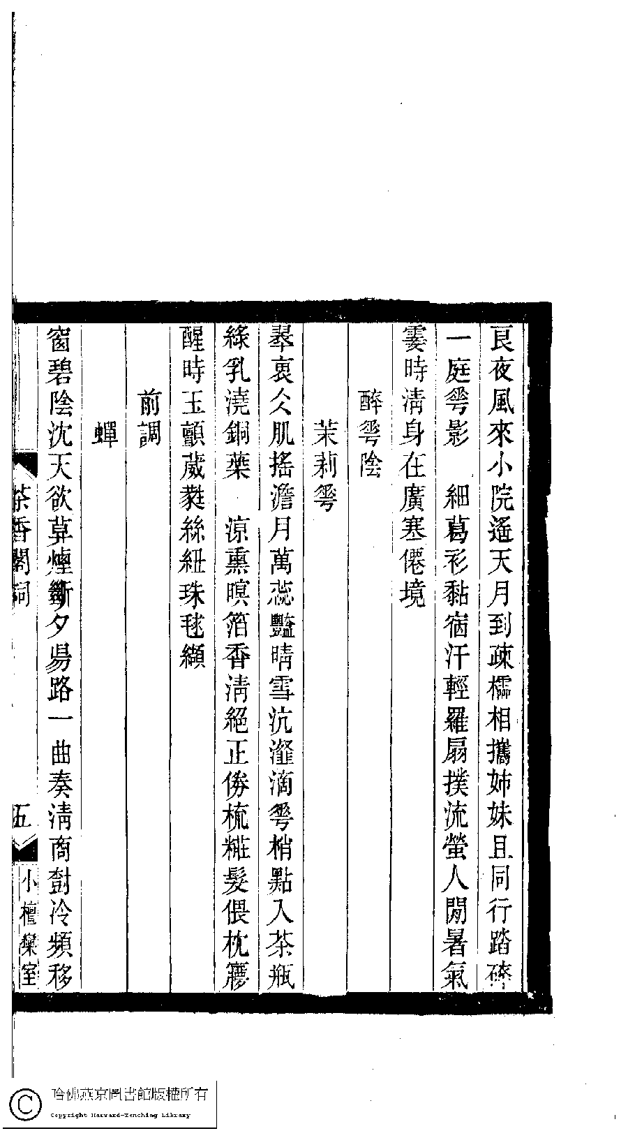 | 原書: 小檀欒室彙刻閨秀詞﹕十集一百種一百卷(清徐乃昌輯): 茶香閣詞﹕一卷 |