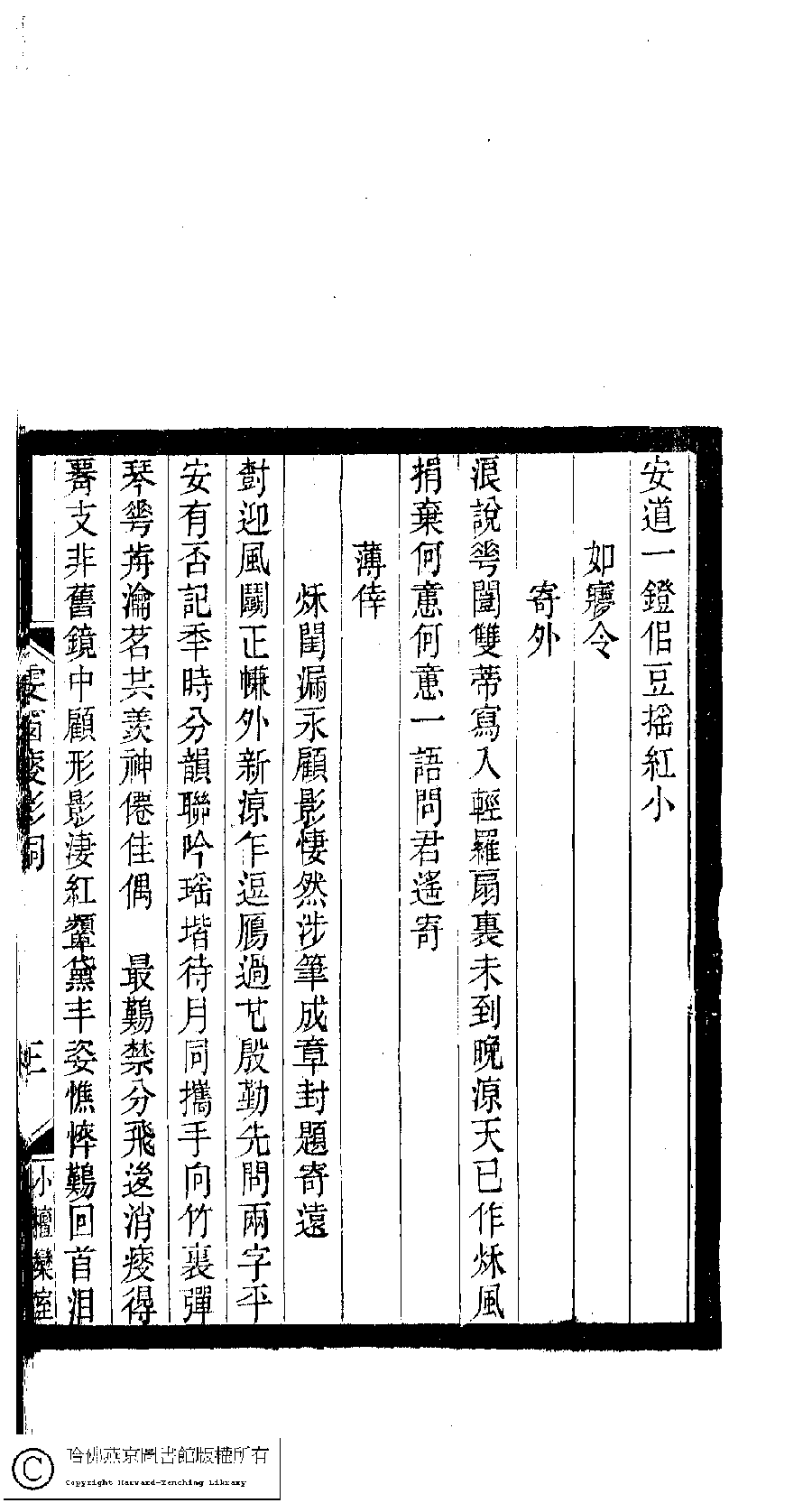 | 原書: 小檀欒室彙刻閨秀詞﹕十集一百種一百卷(清徐乃昌輯): 雯窗瘦影詞﹕一卷 |
