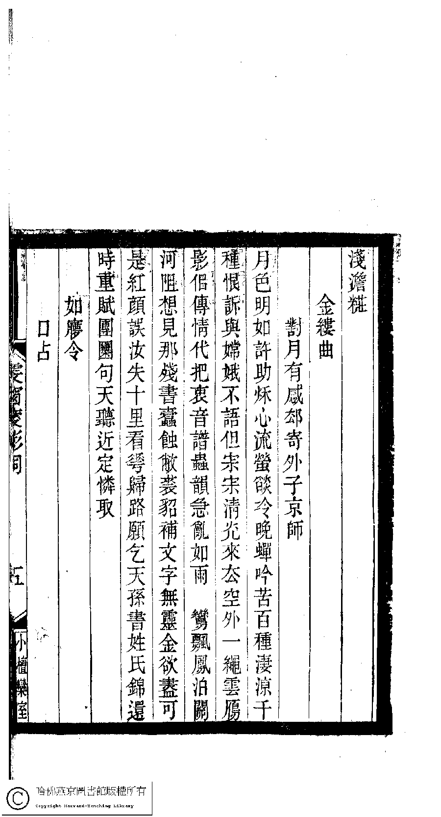 | 原書: 小檀欒室彙刻閨秀詞﹕十集一百種一百卷(清徐乃昌輯): 雯窗瘦影詞﹕一卷 |
