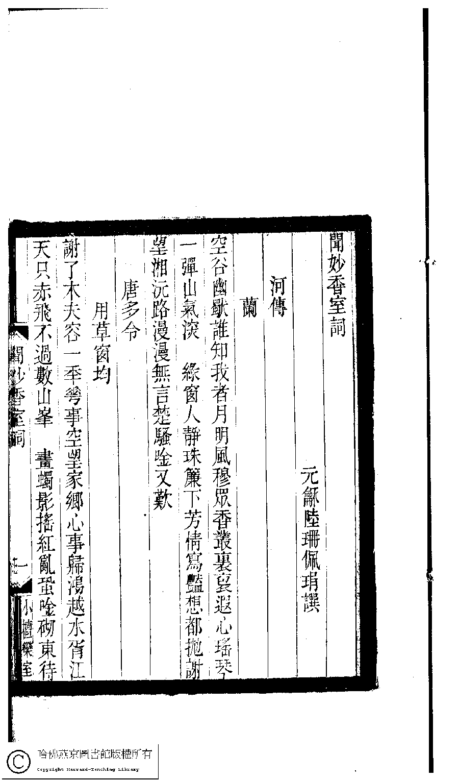 | 原書: 小檀欒室彙刻閨秀詞﹕十集一百種一百卷(清徐乃昌輯): 聞妙香室詞﹕一卷 |