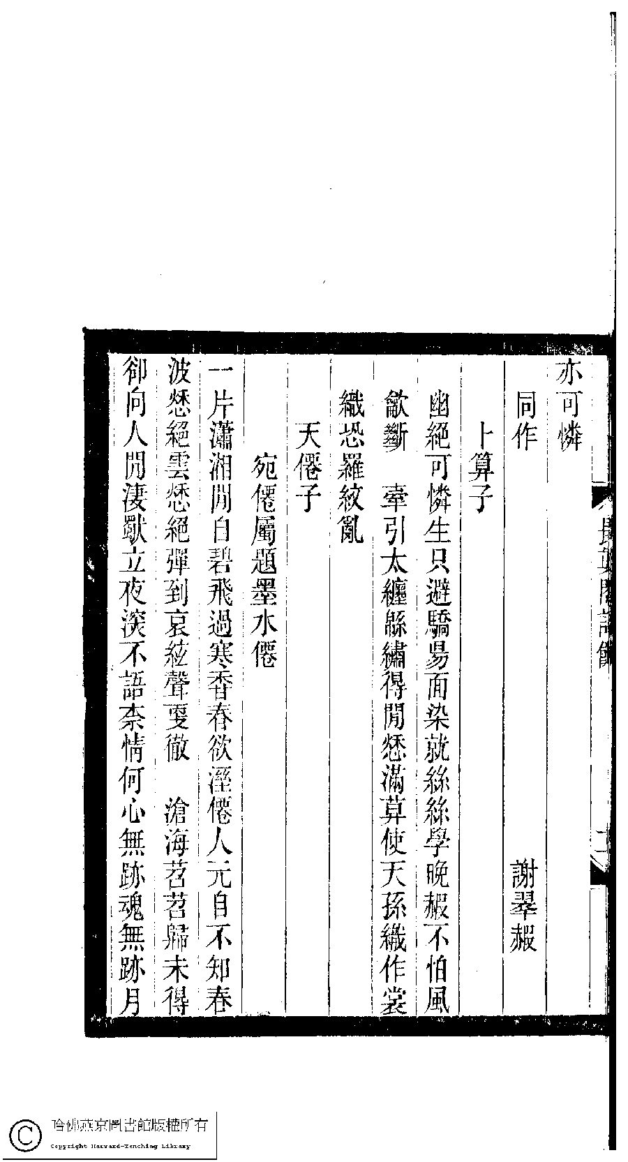 | 原書: 小檀欒室彙刻閨秀詞﹕十集一百種一百卷(清徐乃昌輯): 長真閣詩餘﹕一卷 |