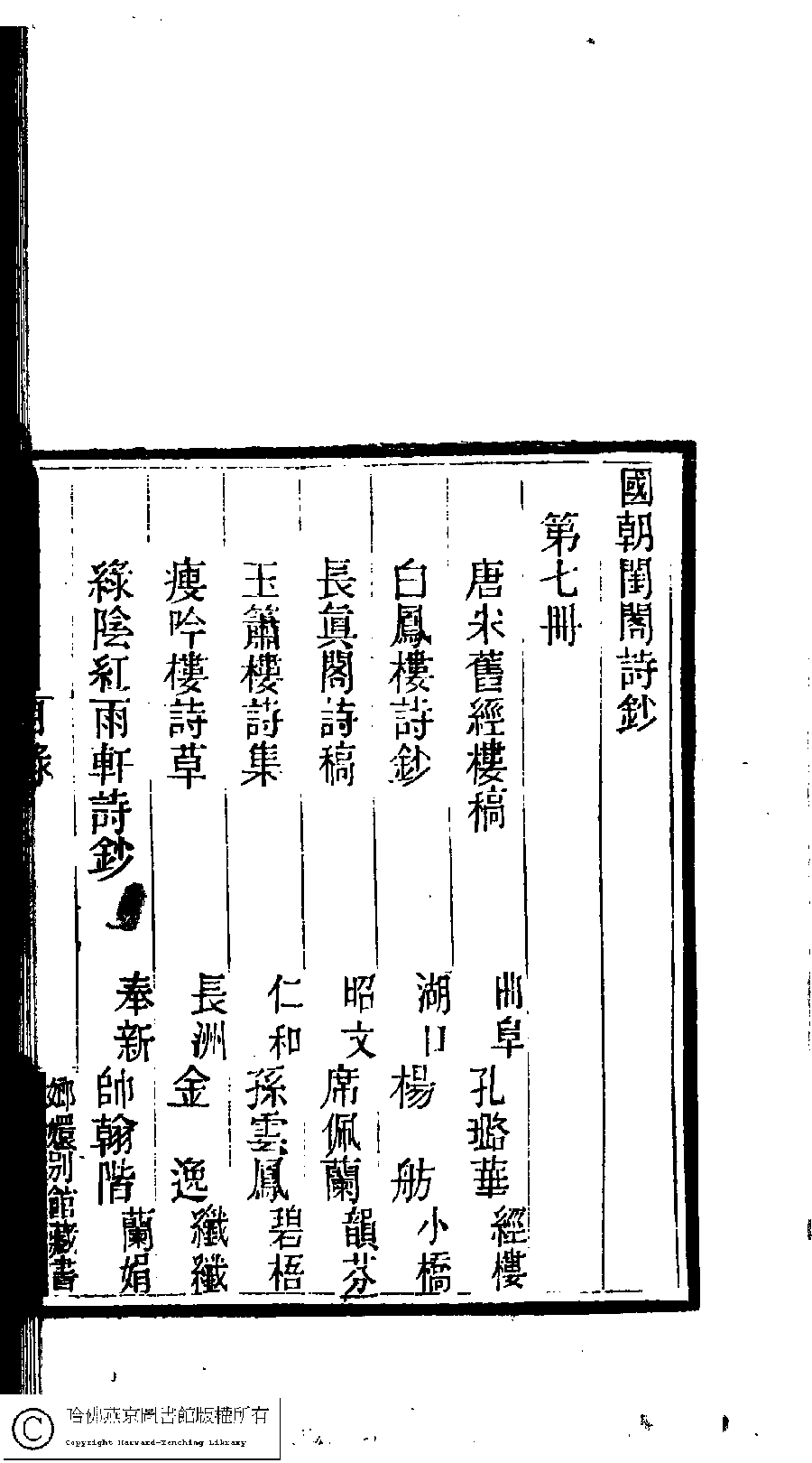 | 原書: 國朝閨閣詩鈔﹕一百種一百卷(清蔡殿齊輯) |