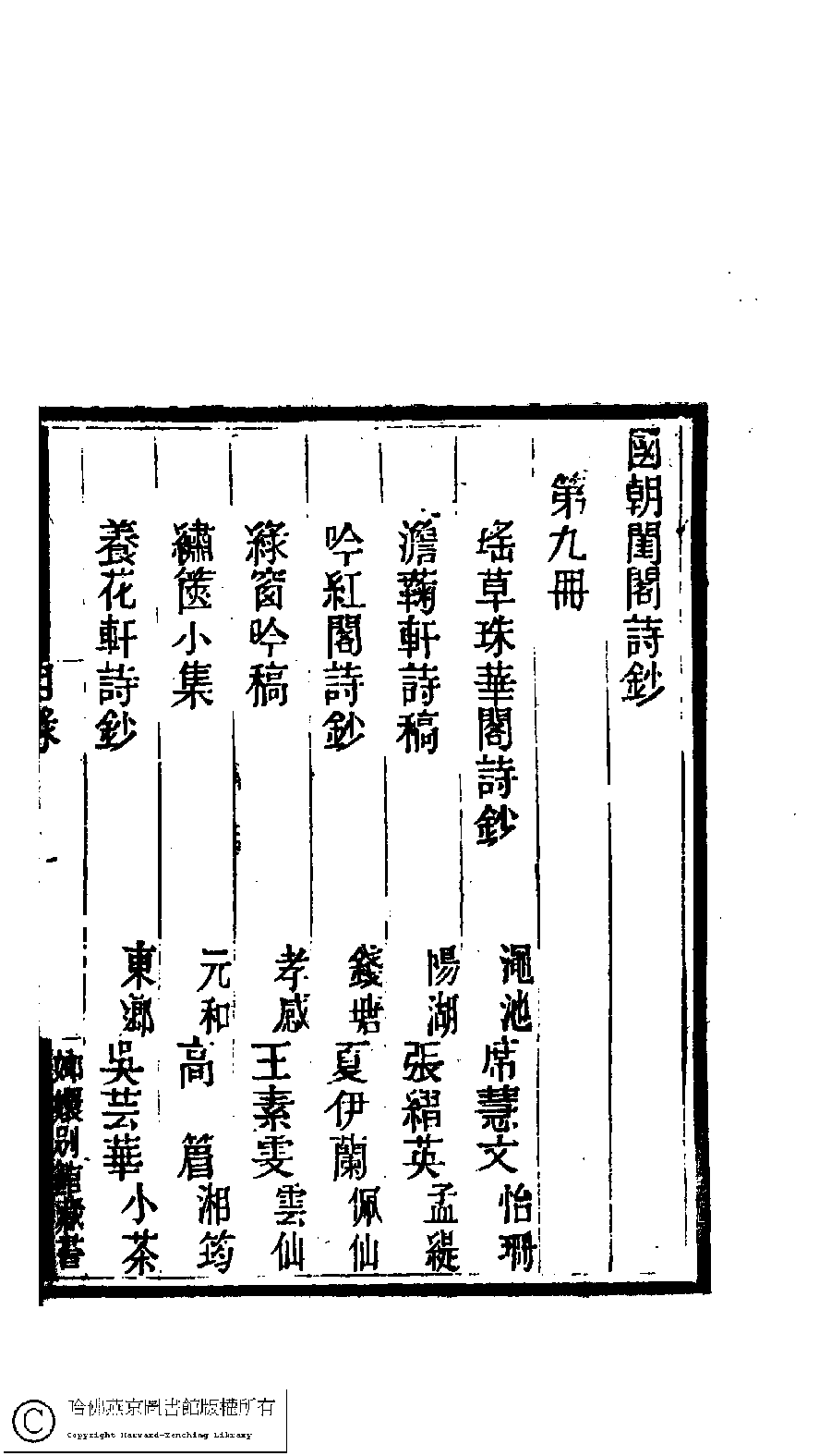 | 原書: 國朝閨閣詩鈔﹕一百種一百卷(清蔡殿齊輯) |