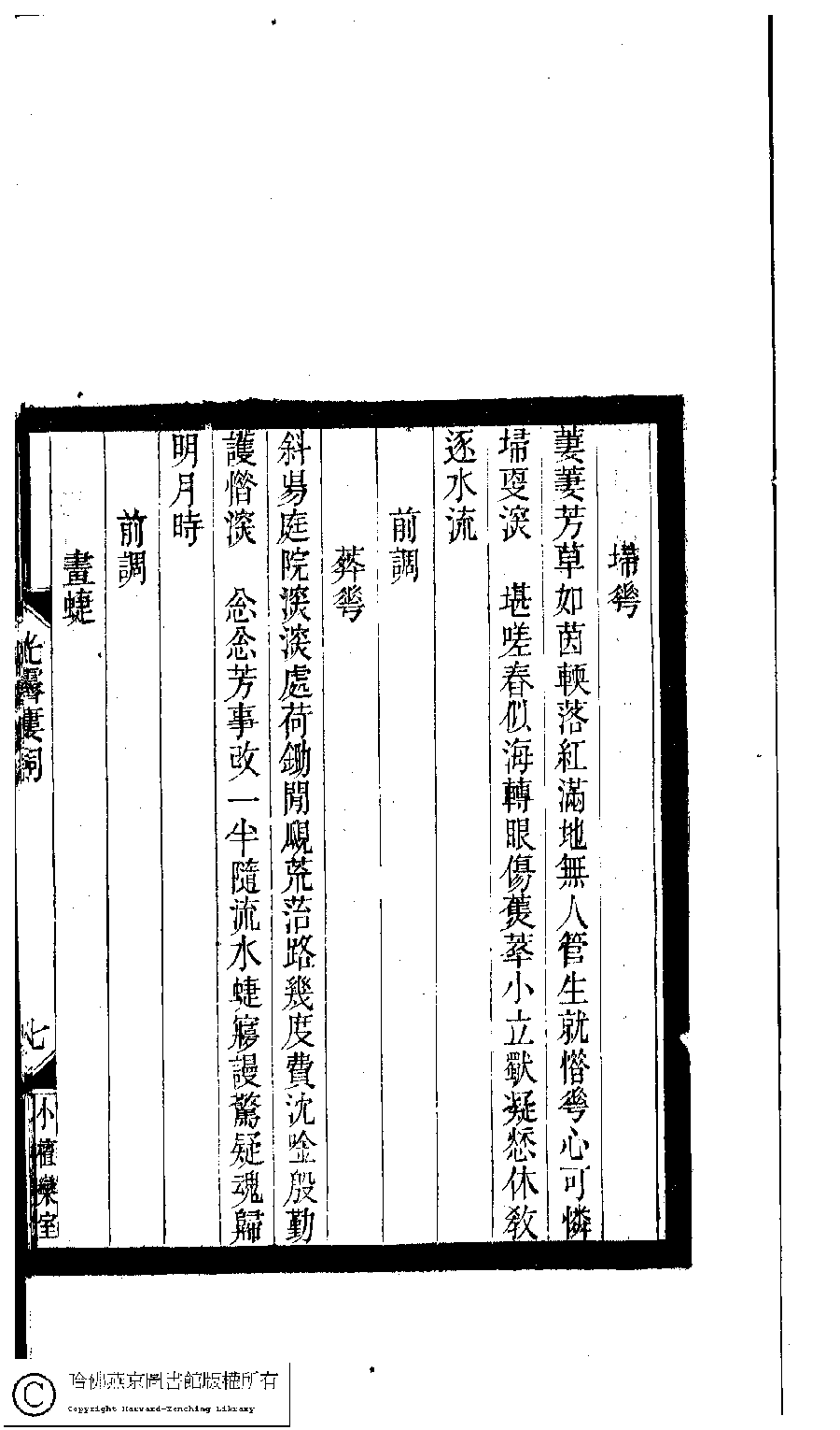 | 原書: 小檀欒室彙刻閨秀詞﹕十集一百種一百卷(清徐乃昌輯): 光霽樓詞﹕一卷 |