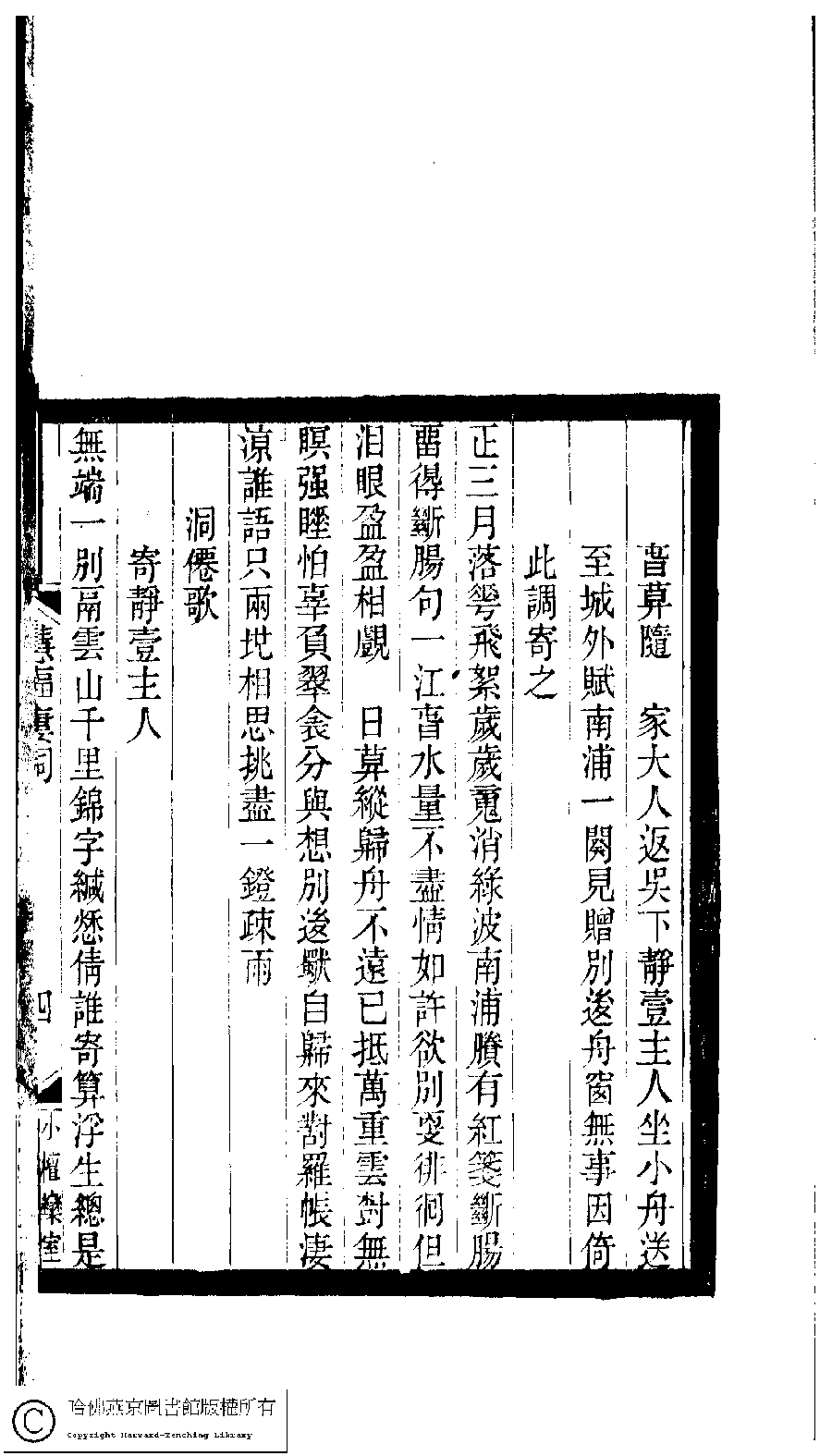 詩詞 [長亭怨慢 ﹕旾萛隨家大人返吳下靜壹主人坐小舟送至城外賦南浦一闋見贈別後舟窗無事因倚此調寄之]