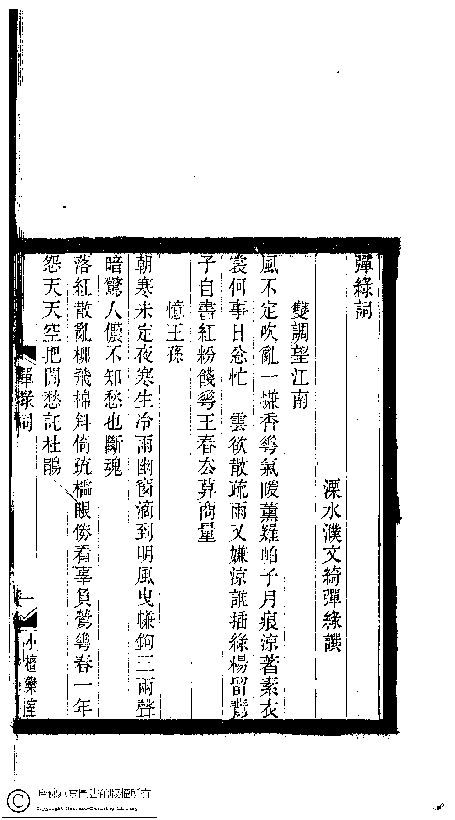 | 原書: 小檀欒室彙刻閨秀詞﹕十集一百種一百卷(清徐乃昌輯): 彈綠詞﹕一卷 |